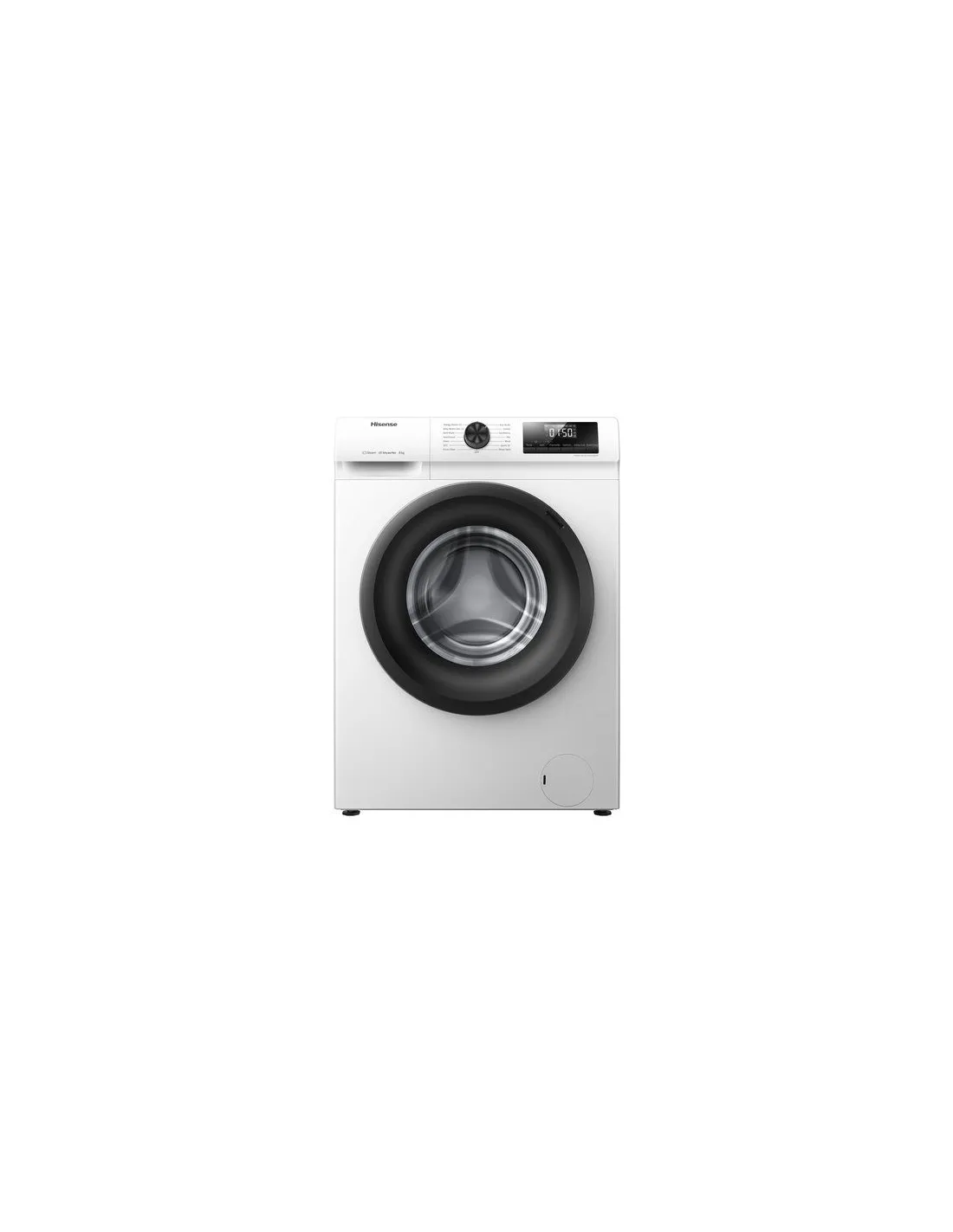 Hisense WFQP8014EVM. Tipo di carica: Caricamento frontale. Capacità cestello: 8 kg, Classe di efficienza della centrifuga: B, Silenziosità (centrifuga): 72 dB, Velocità di centrifuga massima: 1400 Giri/min. Colore del prodotto: Bianco. Larghezza: 595 mm, Profondità: 540 mm, Altezza: 850 mm. Classe efficienza energetica: A