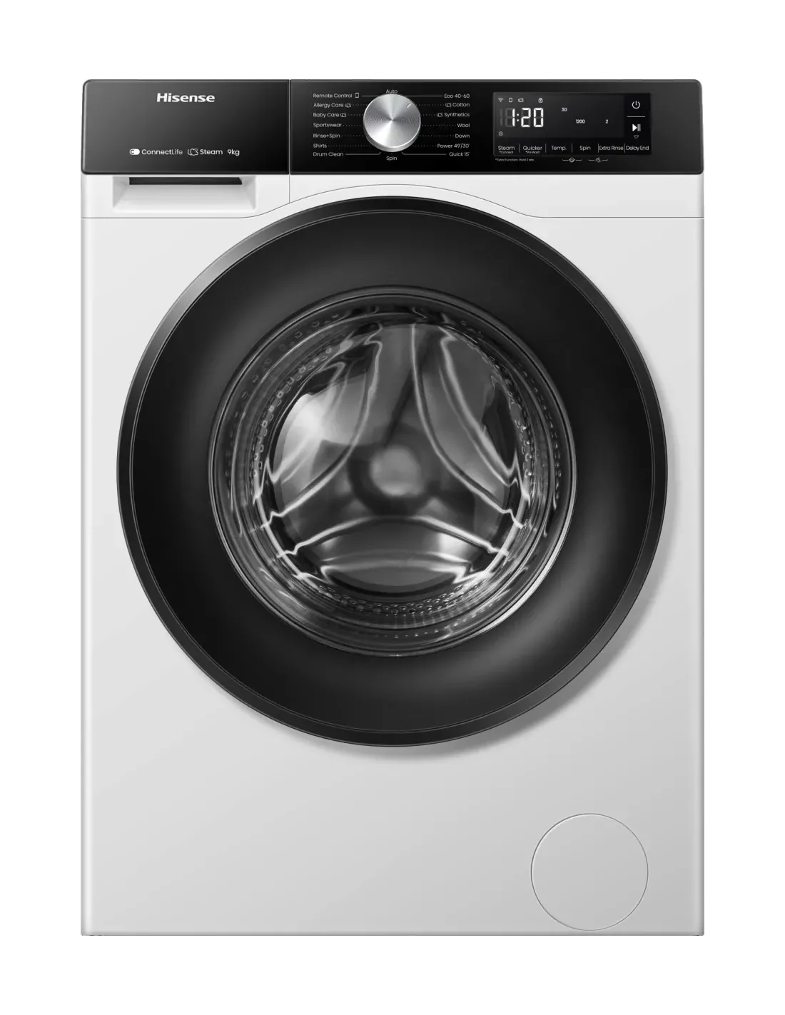 | Tecnologie Hisense (cura dei vestiti) | Allergy Care, Big LED Display, Blocco bambini, App ConnectLife, Pulizia tamburo, Durable Inverter, Favourite, Mezzo carico, Hygiene Guard, Motore inverter, Jet Wash, Pause & Add, PureJet, Lavaggio rapido, Quick Wash (15min), Self-Diagnostic, Smart Assist, Smart Link, Vapore |