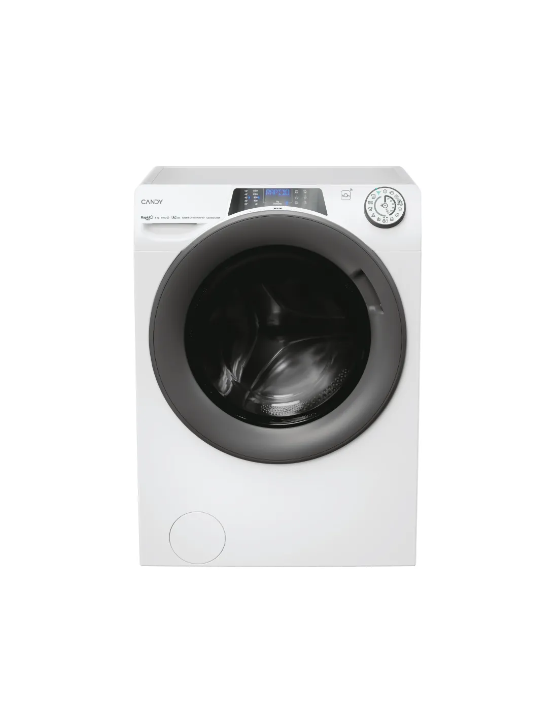 Candy RapidÓ PRO , Lavatrice Carica Frontale 8 KG, 30% più efficente della classe A, 1400 giri, Bianco, Inverter, Vapore, Wi-Fi, RP 486BWMR9/1-S. Tipo di carica: Caricamento frontale. Capacità cestello: 8 kg, Classe di efficienza della centrifuga: B, Silenziosità (centrifuga): 76 dB, Velocità di centrifuga massima: 1400 Giri/min. Colore del prodotto: Bianco. Larghezza: 600 mm, Profondità: 540 mm, Altezza: 850 mm. Classe efficienza energetica: A