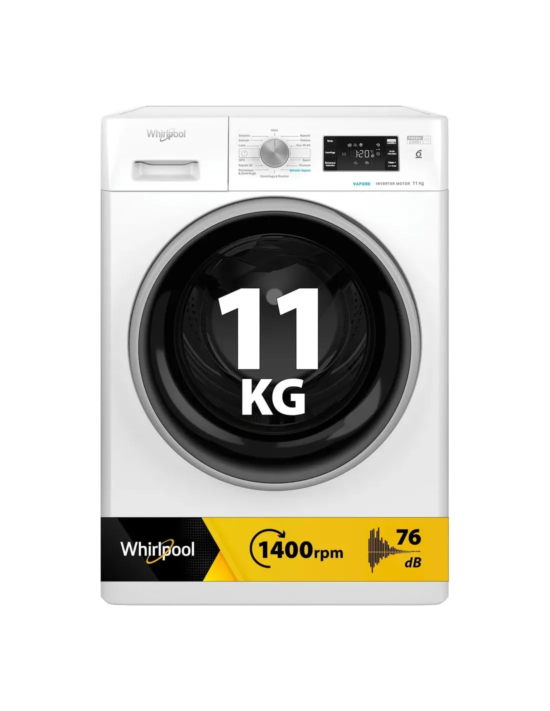 Whirlpool Lavatrice a libera installazione - FFB 1148 BSV IT, Caricamento frontale, 11 kg, B, 76 dB, 1400 Giri/min, A