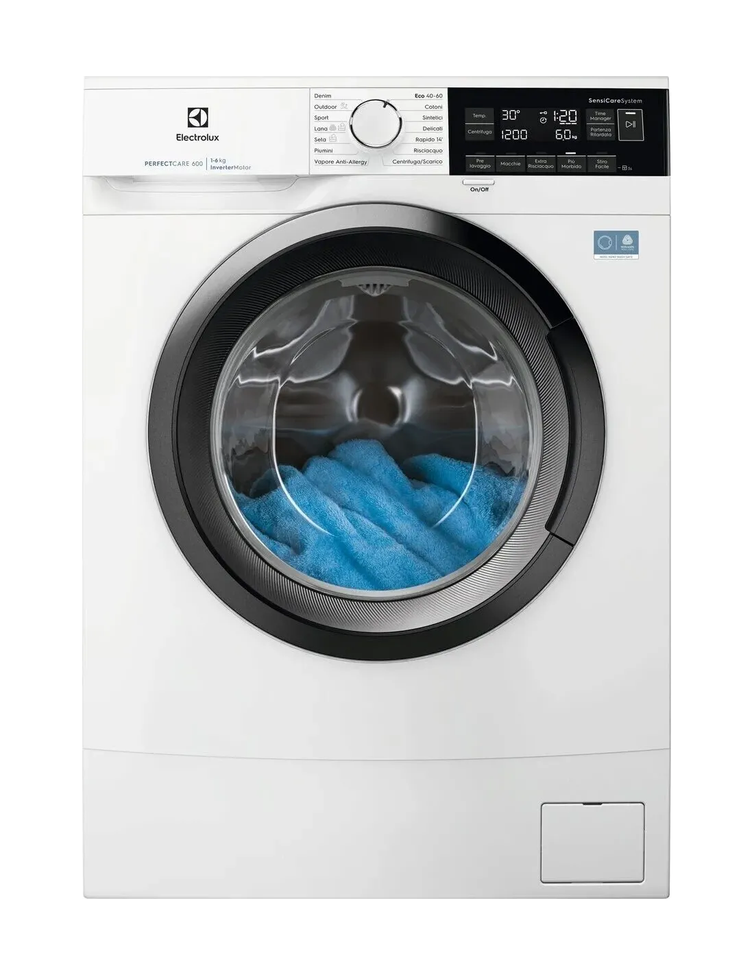La tecnologia SensiCare System regola in automatico grazie ad appositi sensori il ciclo in base al carico, garantendo un risparmio di tempo, acqua ed energia per un lavaggio delicato e sostenibile.
