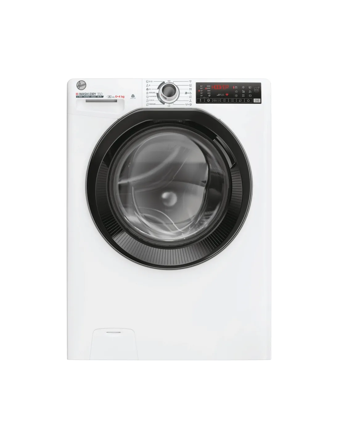 Hoover H-WASH&DRY 350 H-WASH 350, Lavasciuga Slim 6+4 KG, 10% più efficente della classe A, 1400 giri, Bianco, Inverter, Vapore, Wi-Fi, H3DPS 4646TAB6-S, Caricamento frontale, Libera installazione, Bianco, Sinistra, Nero, Manopola, Touch