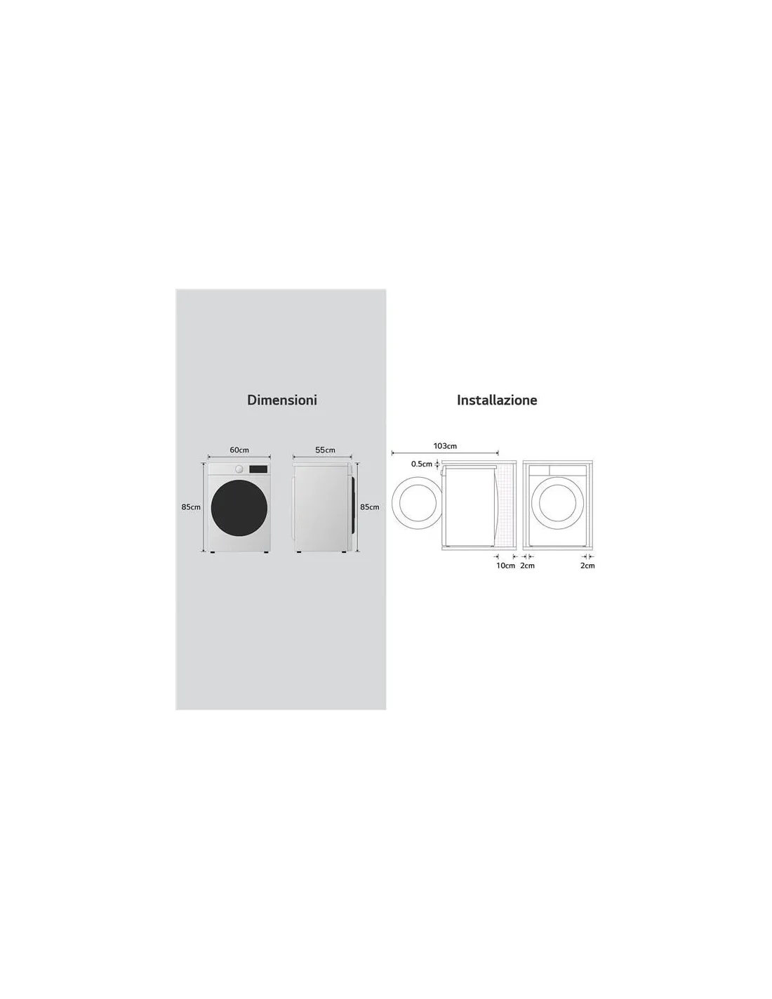 LG W4NX1085NWB Lavasciuga 8/5kg Serie X1, Classe A/E, 6 Motion Direct Drive, Wi-Fi, 1400 giri, Allergy Care, BiancaLG W4NX1085NWB Lavasciuga 8/5kg Serie X1, Classe A/E, 6 Motion Direct Drive, Wi-Fi, 1400 giri, Allergy Care, Bianca. Tipo di carica: Caricamento frontale, Posizionamento dell'apparecchio: Libera installazione, Colore del prodotto: Bianco. Capacità di asciugatura: 5 kg, Velocità di centrifuga massima: 1400 Giri/min, Classe di efficienza della centrifuga: B. Angolo di apertura della porta: 150°. Classe di efficienza energetica (lavaggio): A, Classe di efficienza energetica( lavaggio e asciugatura): E, Consumo di acqua (lavaggio): 48 L. Durata della garanzia: 2 anno/i