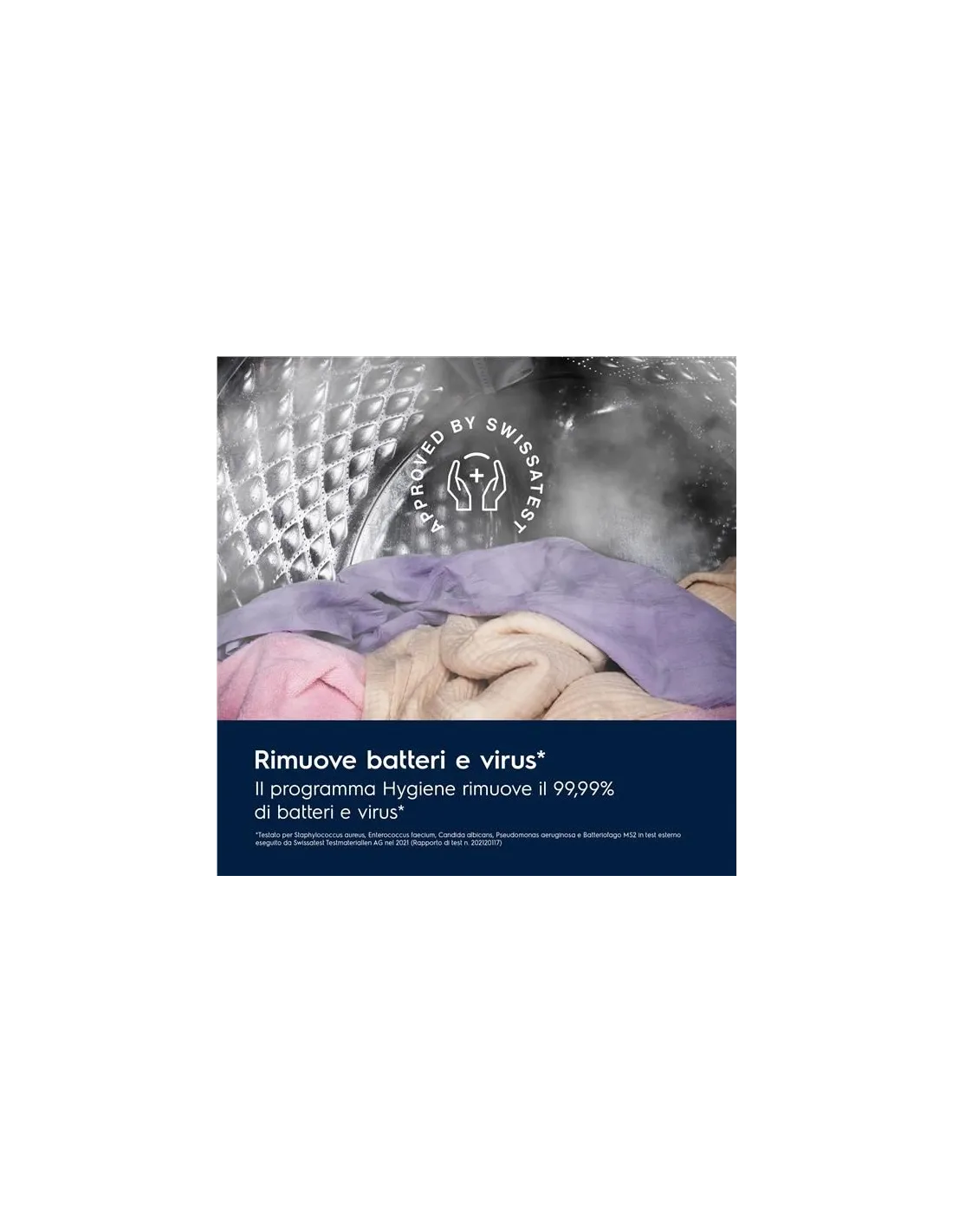 SensiCare - risparmia fino al 30% di tempo, acqua ed energia[2]SensiCare è la tecnologia che rileva le dimensioni del carico e regola il programma per risparmiare fino al 30% di tempo, acqua ed energia[2]. Questo garantisce un lavaggio preciso e su misura per ogni capo.Riduci il tempo di lavaggio con Time Manager®Non lavare più del necessario. Lava i tuoi capi con la funzione regolabile a 4 fasi Time Manager® per ridurre la durata del ciclo di lavaggio.Il programma Hygiene rimuove il 99,99% di virus e batteri[1]Il programma Hygiene, certificato da Swissatest, combina il vapore al ciclo di lavaggio per rimuovere più del 99,99% di batteri e virus[1] sopra i 60 º C. Polline e allergeni sono ridotti per una pulizia igienica dopo ogni lavaggio.Lavaggio rapido, per risultati velociIl programma Rapido consente di lavare rapidamente i vestiti per una pulizia veloce. In soli 20 minuti puoi lavare 3 kg di biancheria.Motore Inverter+ è efficiente e durevole dal punto di vista energeticoIl Motore Inverter+ è più efficiente dal punto di vista energetico rispetto ai motori Inverter standard grazie alla tecnologia a magneti permanenti.