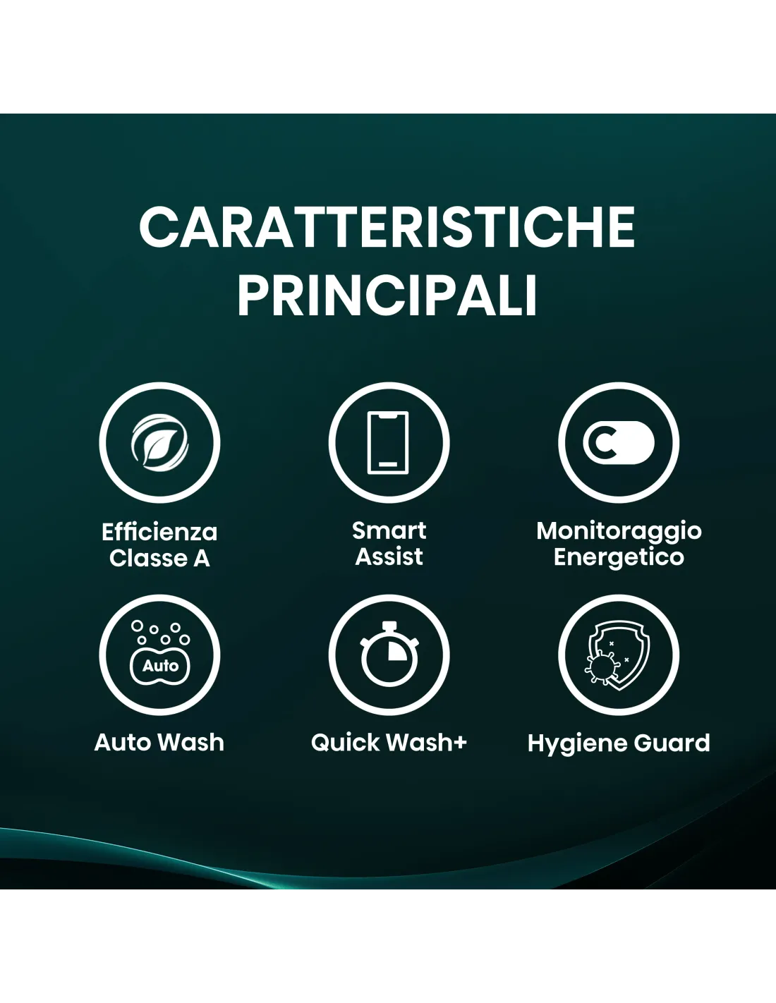 La lavatrice con un dottore dentro! Nell'evento estremamente improbabile di un malfunzionamento, gli strumenti di autodiagnosi ti notificheranno immediatamente con un codice di errore univoco a cui puoi accedere facilmente tramite il tuo cellulare e che puoi trovare nel manuale utente. Ciò rende la risoluzione dei problemi rapida e comoda, facendoti risparmiare tempo e stress e assicurandoti che sia tu che il tuo elettrodomestico siate al sicuro e protetti.