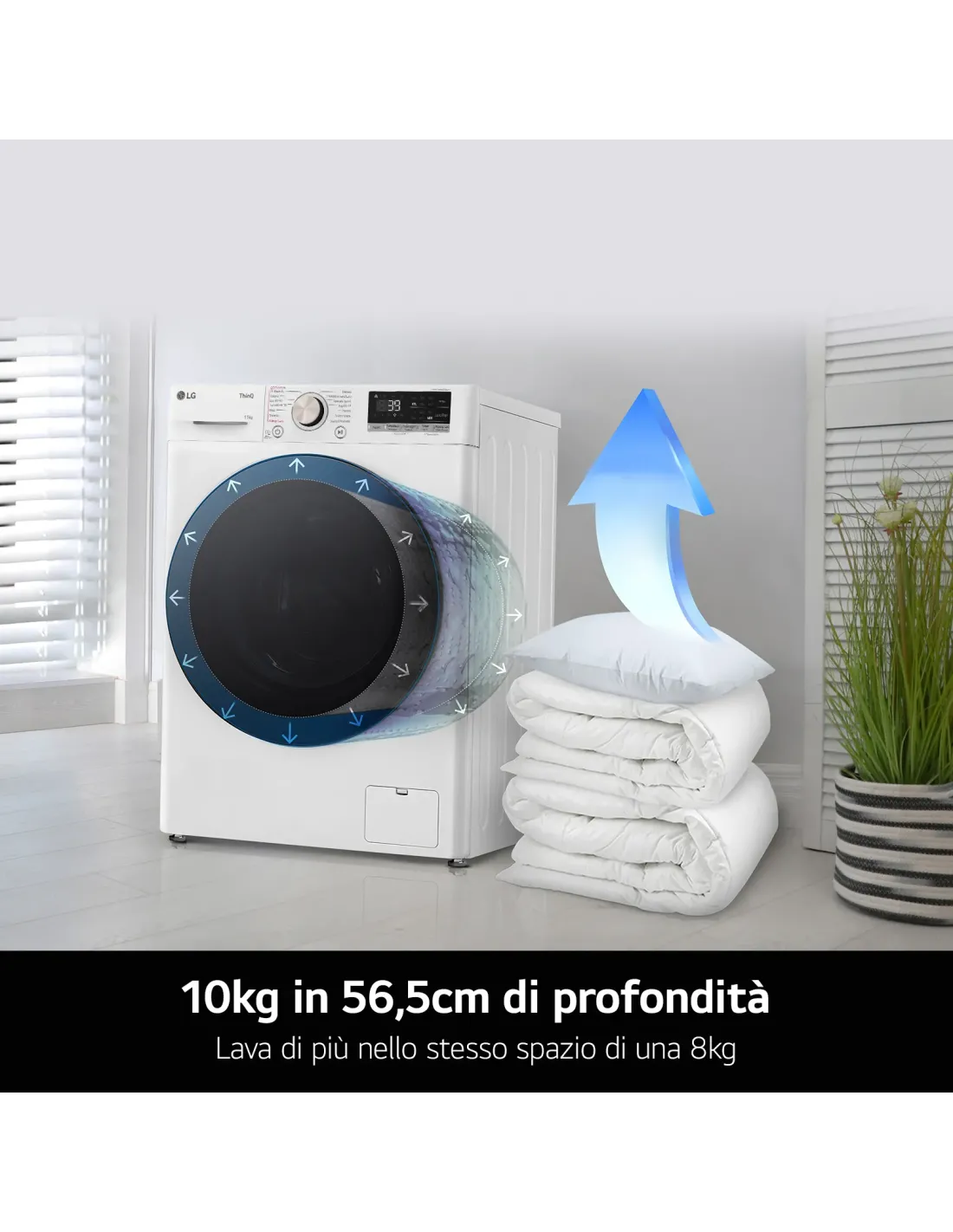 *Testato da Intertek a marzo 2019. Ciclo Cotone con 2 kg di biancheria intima confrontato con il ciclo Cotone tradizionale di LG (FC1450S2W). I risultati possono variare a seconda dei capi e dell’ambiente.