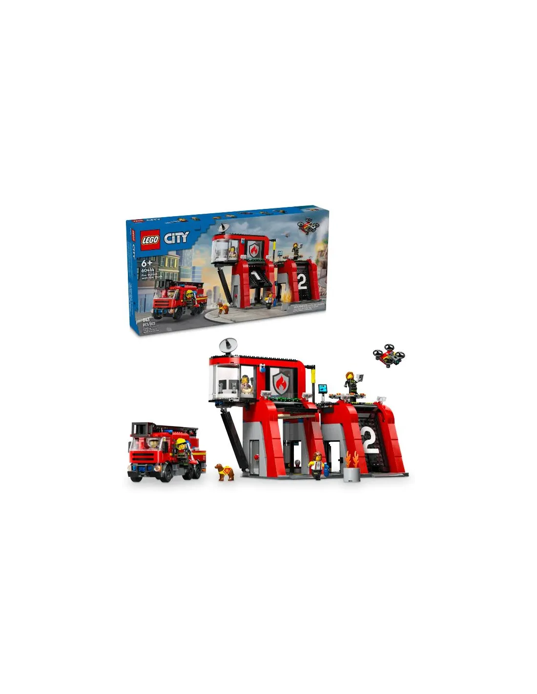Il set include anche un drone giocattolo e una fantastica autopompa con scala modulare ed estintori. Mobilita le 5 minifigure della squadra dei pompieri e il personaggio del cane dei vigili del fuoco per ore di gioco di ruolo antincendio ricco di azione.