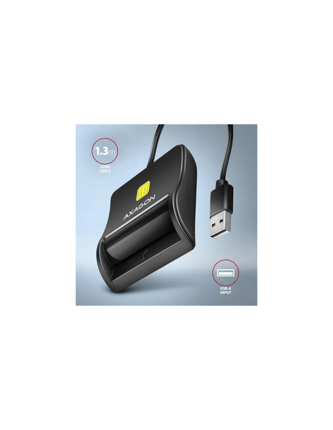 Axagon CRE-SM3N USB Smart card Flat. Interfaccia: USB 2.0. Lunghezza cavo: 1,3 m, Colore del prodotto: Nero. Peso: 57 g
