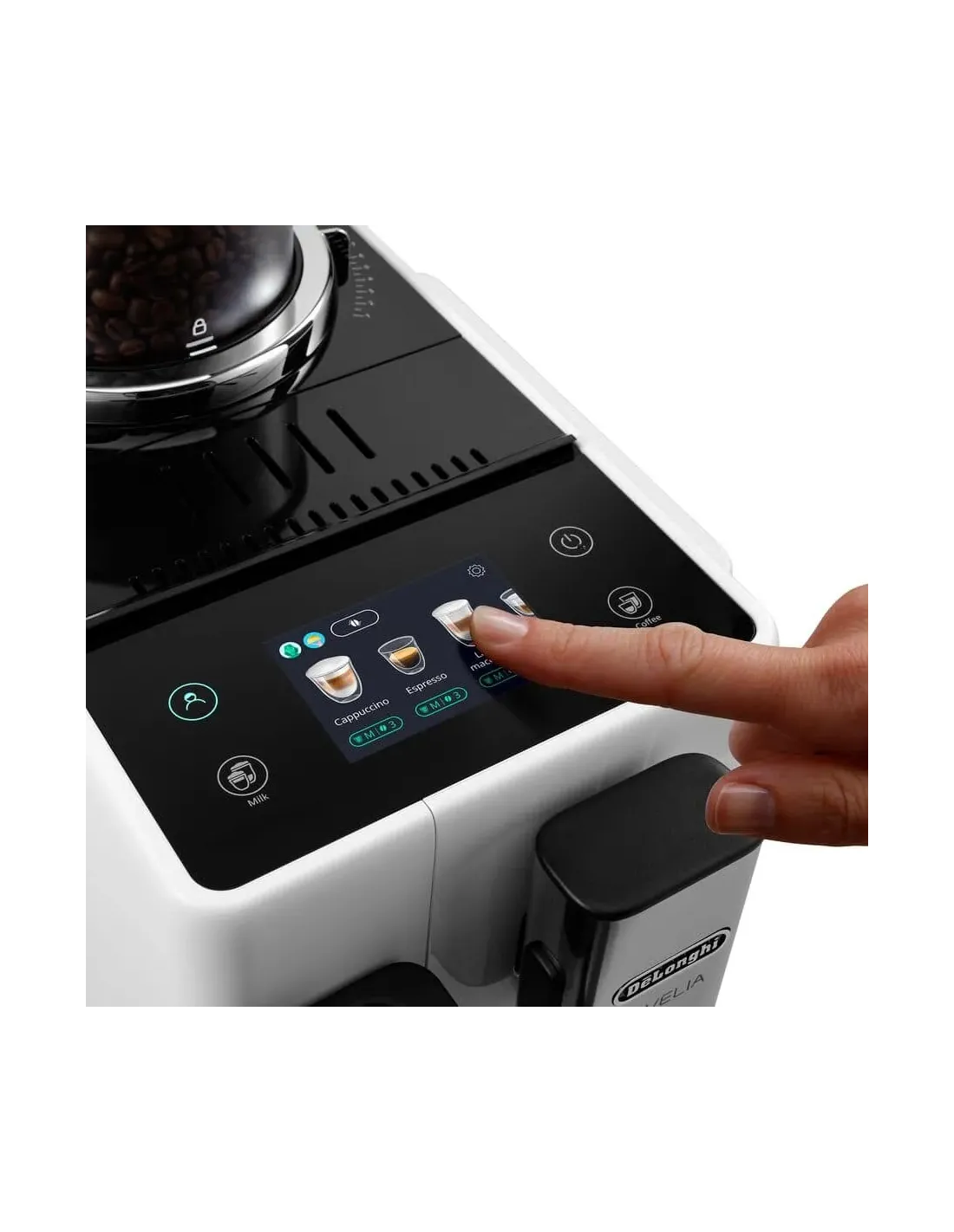 Tuffati nel mondo del caffè con Rivelia. Esplora infinite varietà di chicchi con il Bean Switch System, vivi un’esperienza immersiva con un display a colori full-touch da 3,5”, con ricche animazioni e la funzione Coffee Routines, su misura per te. Completa le tue bevande a base di latte con una schiuma pregiata grazie alla tecnologia LatteCrema Hot, in dotazione a questa macchina compatta che si adatta al tuo stile.