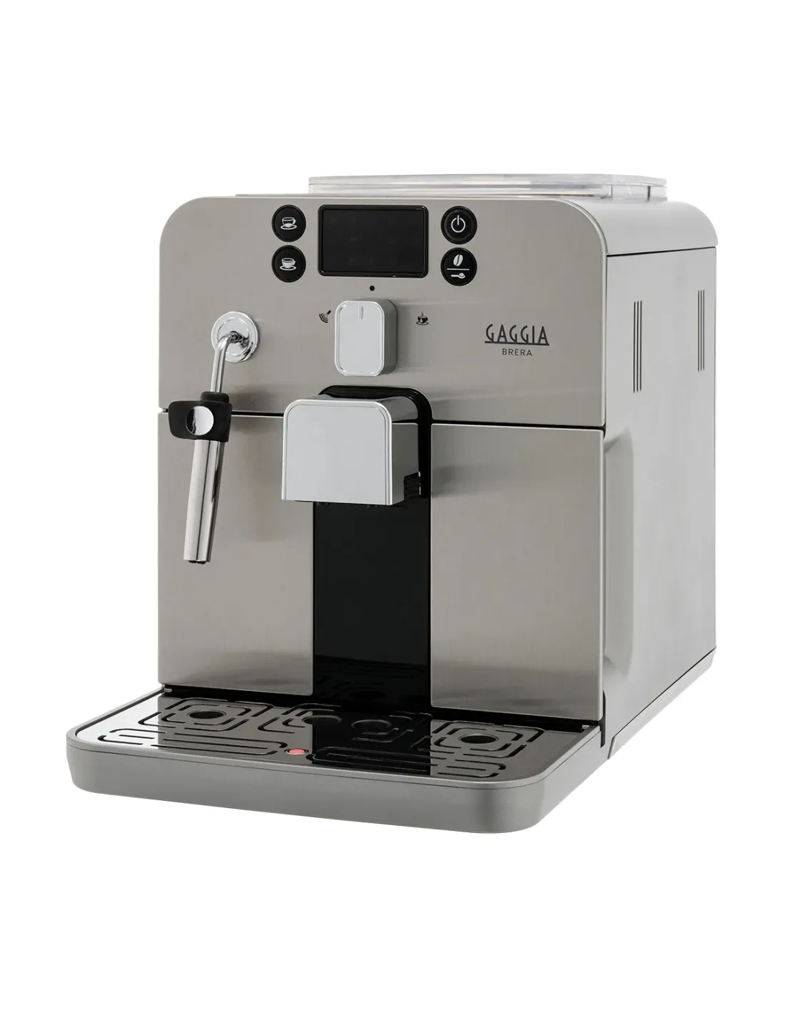 Gaggia Macchina da caffè automatica Brera. Tipo di prodotto: Macchina per espresso, Tipologia macchina del caffé: Automatica, Capacità tanica acqua: 1,2 L, Tipologia di caffè utilizzato: Chicchi di caffè, Caffè macinato, Vaschetta per caffè preparato: Tazza, Numero di erogatori: 2, Macinatore integrato. Potenza: 1400 W. Colore del prodotto: Nero, Argento