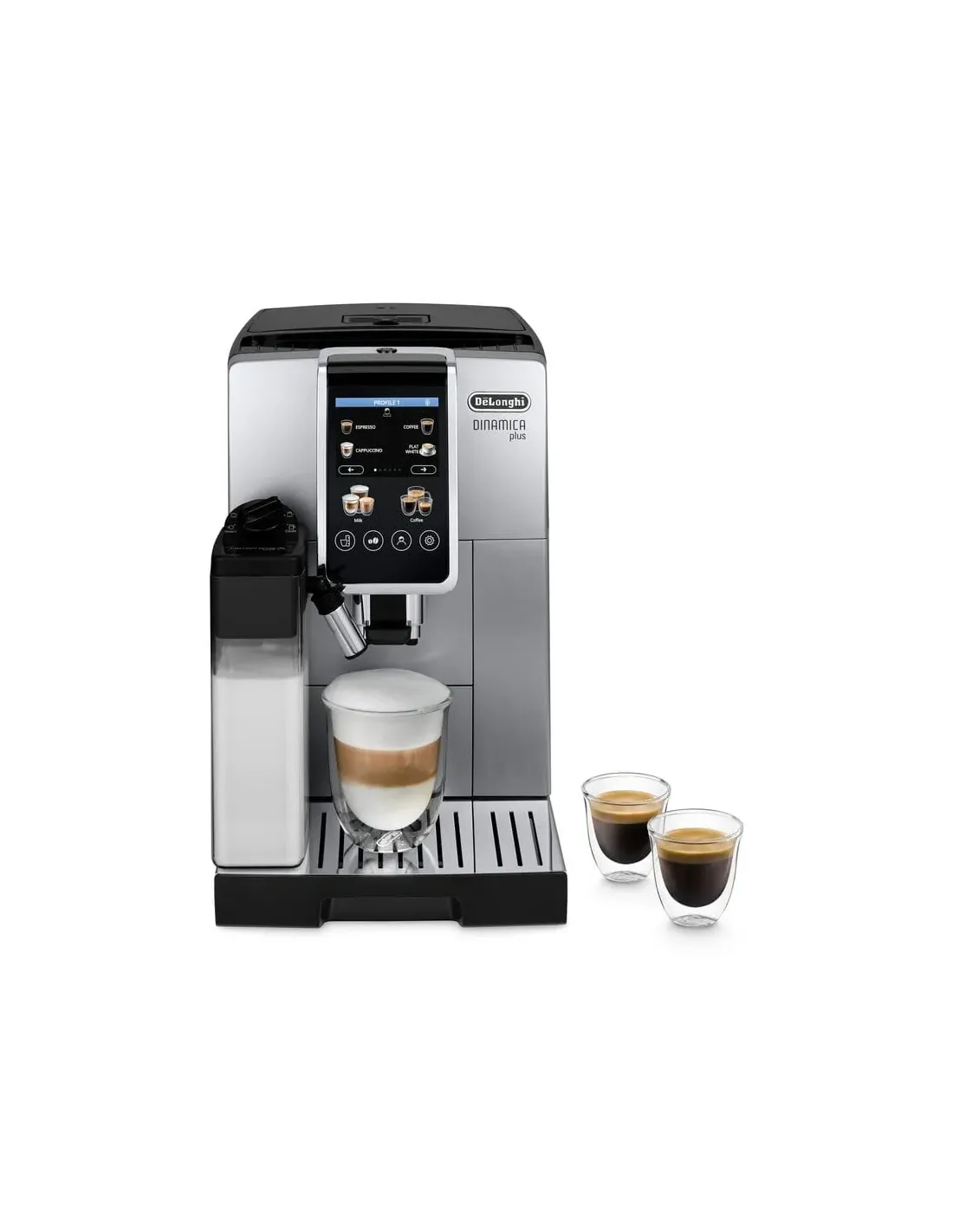 Dinamica Plus ti regalerà il caffè perfetto per ogni momento della giornata. Scegli tra 24 bevande disponibili al tocco di un tasto grazie all’intuitivo display a colori full-touch da 3,5". Dotata dell’esclusiva tecnologia LatteCrema Hot per decorare le bevande con una schiuma di latte ricca e vellutata, e la possibilità di scegliere tra 3 consistenze di schiuma: densa, cremosa o leggera.