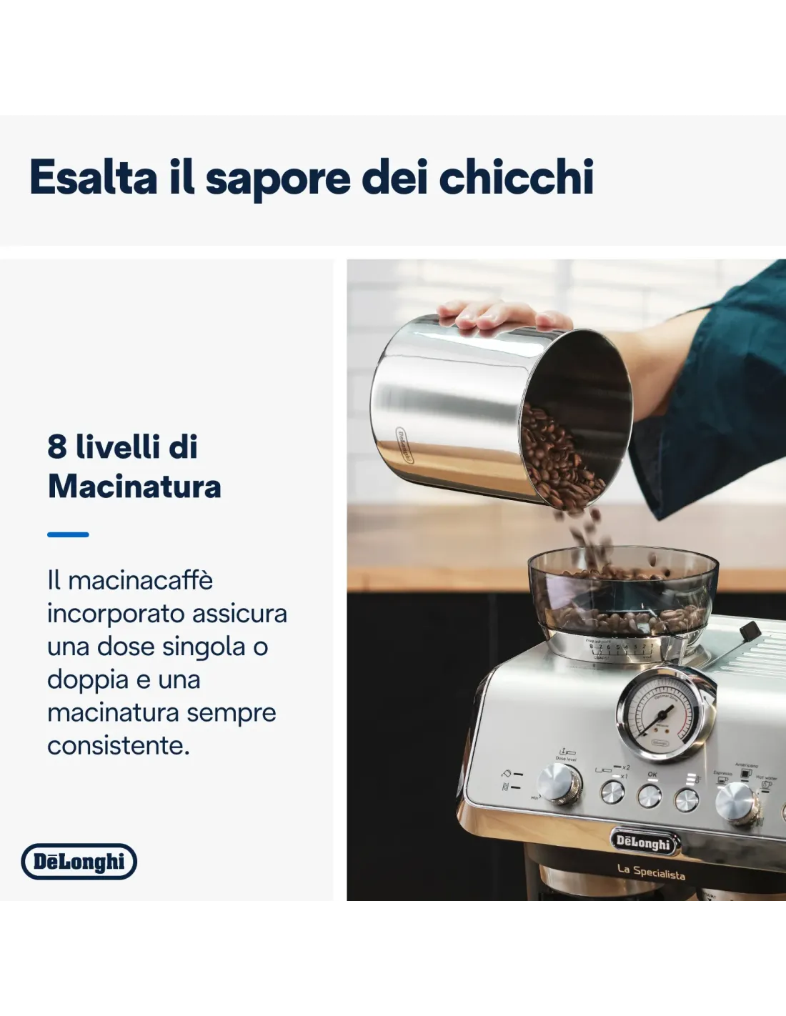 La Specialista Arte è stata studiata per esaltare ogni esperienza di preparazione del caffè e del latte; dall’ottenere il meglio da ogni tipo di chicco, al liberarne gli aromi, fino alla sperimentazione di preparazioni artigianali a base di latte. Concedersi un caffè autentico è possibile e accessibile.