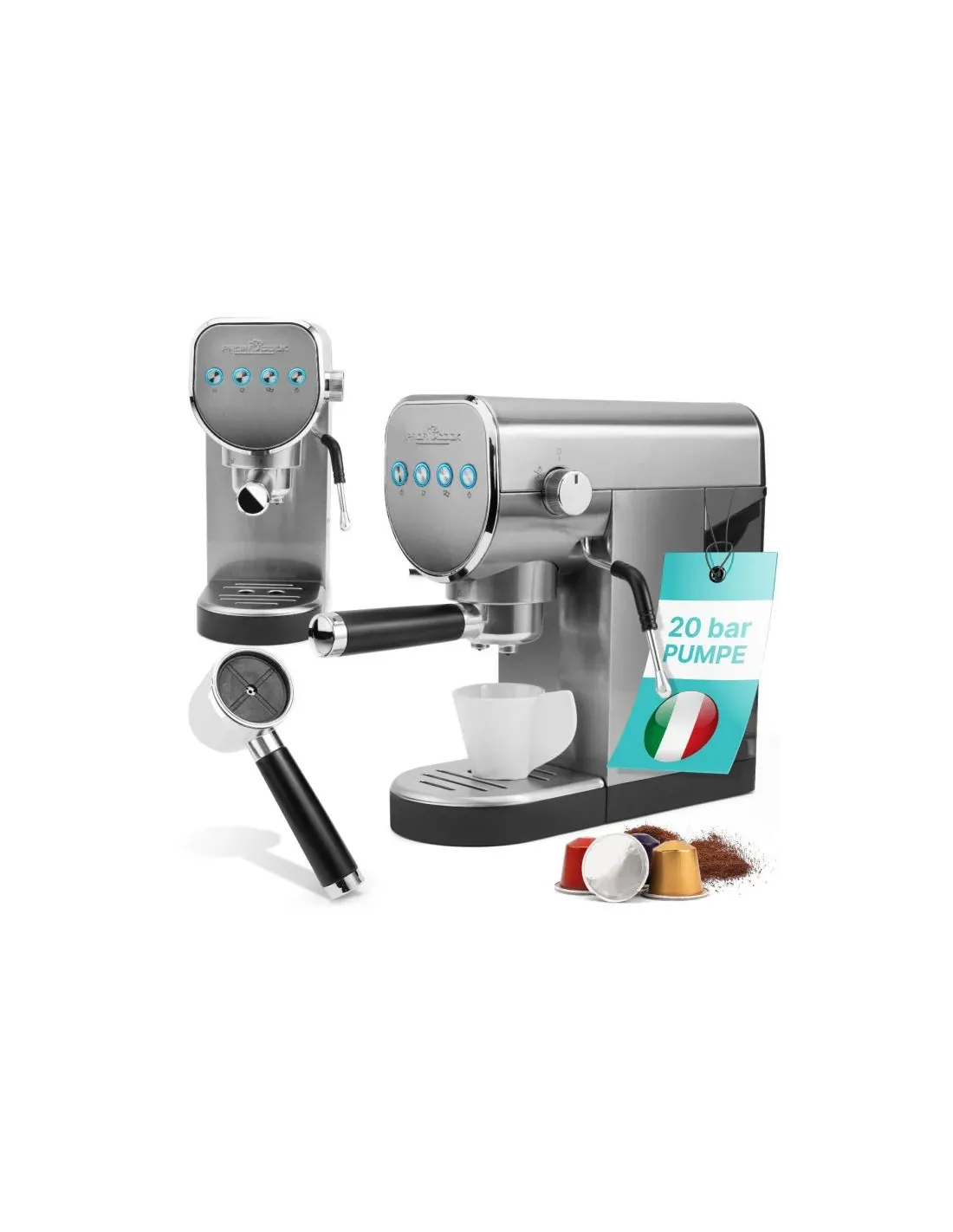 ProfiCookProfiCook PC-ES-KA 1265, Macchina per espresso, 1 L, Caffè macinato, 1360 W, Acciaio inox