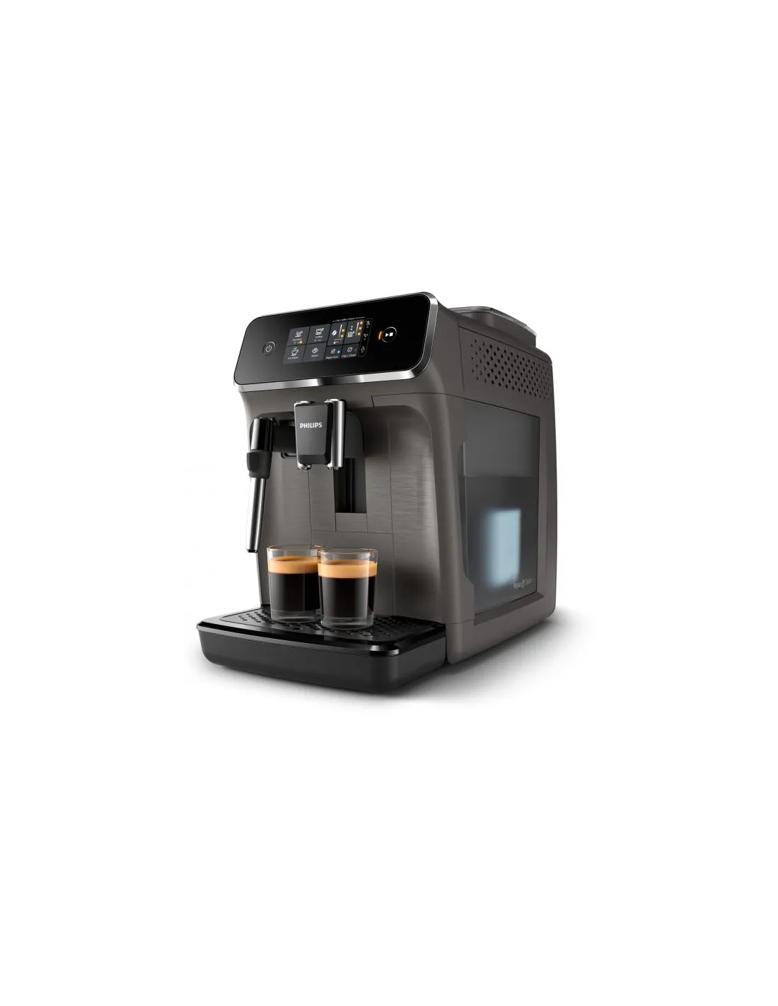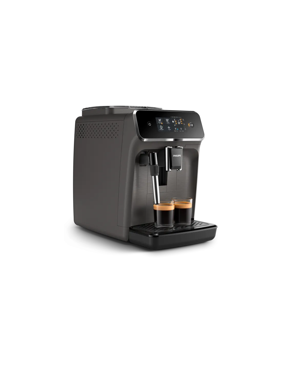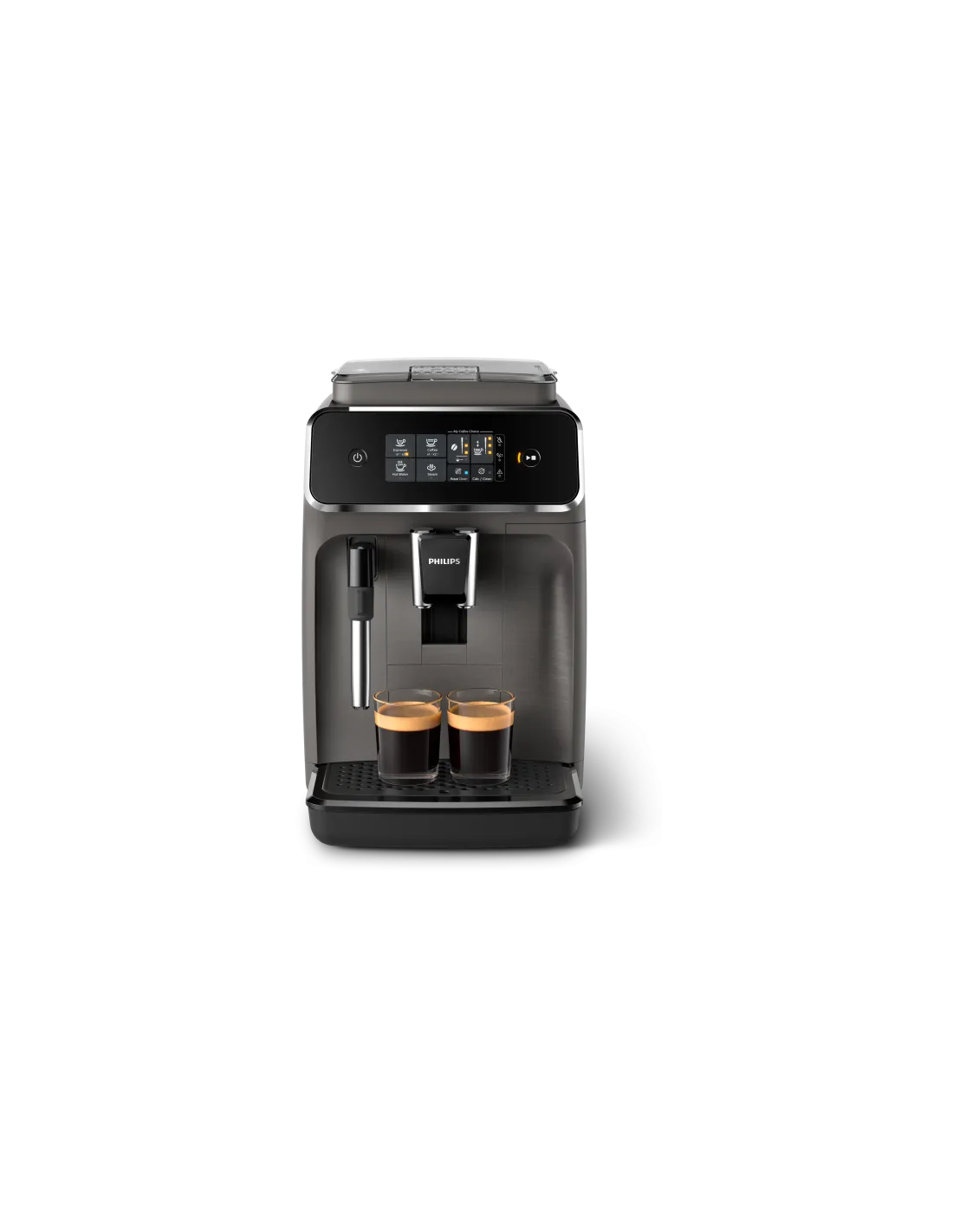 Philips 2200 series Series 2200 EP2224/10 Macchina da caffè automatica. Tipo di prodotto: Macchina per espresso, Tipologia macchina del caffé: Automatica, Capacità tanica acqua: 1,8 L, Tipologia di caffè utilizzato: Chicchi di caffè, Vaschetta per caffè preparato: Tazza, Numero di erogatori: 2, Macinatore integrato. Tipo di display: TFT. Potenza: 1500 W