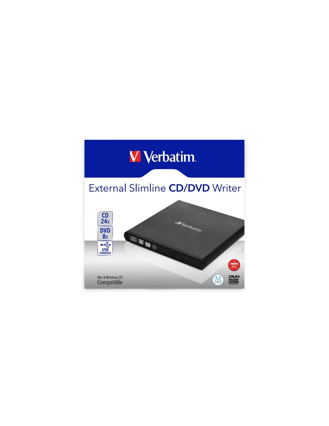 Questo piccolo dispositivo ha tutto ciò che occorre se possiedi un notebook, ultrabook o netbook. Usalo per installare il software o per creare backup. Il masterizzatore CD/DVD esterno Slimline Verbatim è alimentato via USB e quindi non occorre nessun adattatore di corrente. È poco più grande di un DVD e sta in una tasca: potrai portarlo sempre con te ovunque tu vada!