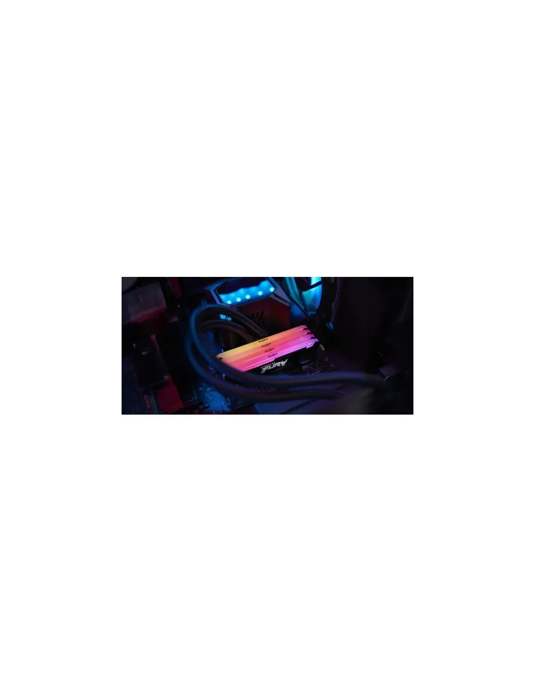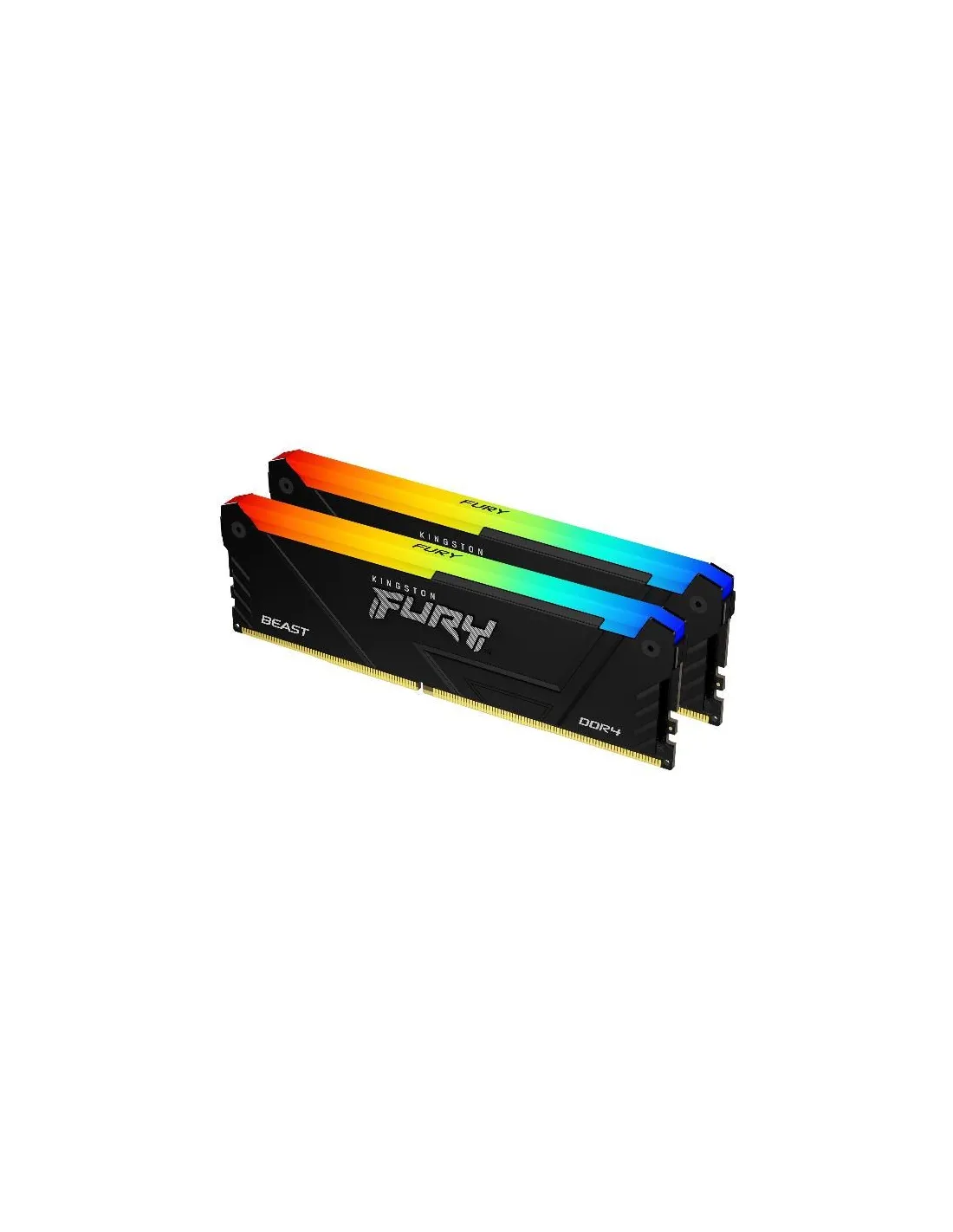 Le memorie Kingston FURY™ Beast DDR4 RGB elevano lo stile e le prestazioni di qualsiasi sistema, con un'impressionante velocità e la suggestiva illuminazione RGB che rende ancora più accattivante l'elegante diffusore di calore nero.