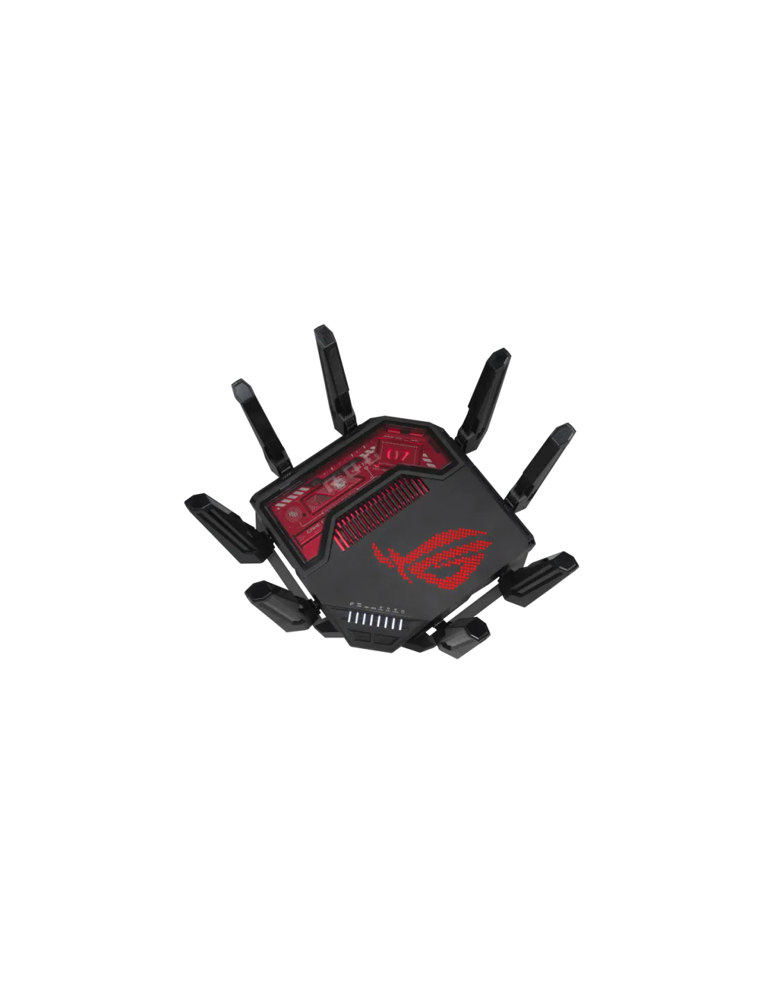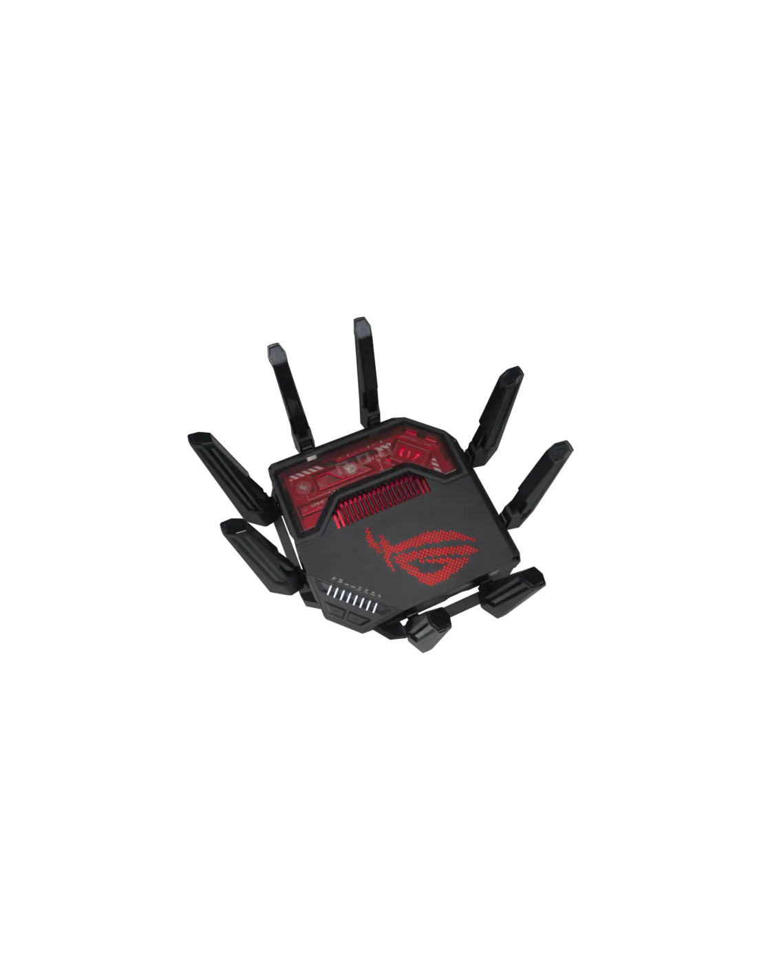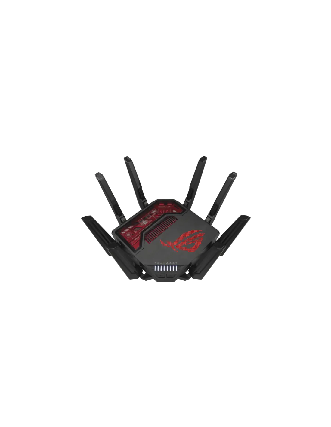 ASUS ROG Rapture GT-BE19000. Tipo di connessione WAN: RJ-45. Banda Wi-Fi: Tri-band (2,4 GHz/5 GHz/6 GHz), Wi-Fi standard: Wi-Fi 7 (802.11be), Intervallo di trasferimento dei dati WLAN (max): 19000 Mbit/s. Tipo di interfaccia LAN Ethernet: Multi-Gigabit Ethernet, Velocità trasferimento Ethernet LAN: 10,100,1000,2500,10000 Mbit/s, Supporto VPN: VPN Client L2TP VPN Client Open VPN VPN Client PPTP VPN Client WireGuard VPN Server IPSec VPN.... Algoritmi di sicurezza supportati: WPA-Enterprise, WPA-Personal, WPA2-Enterprise, WPA2-Personal, WPA3-Enterprise, WPA3-Personal. Tipo di prodotto: Router da tavolo, Colore del prodotto: Nero, Rosso, Indicatori LED: LAN, Potenza, WAN