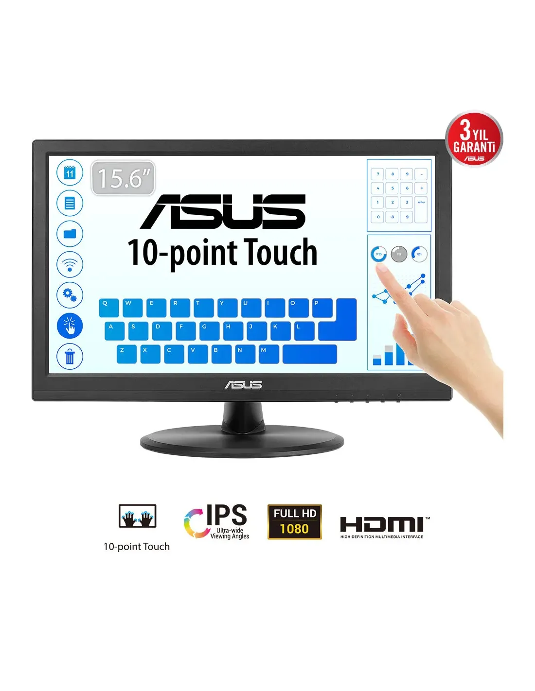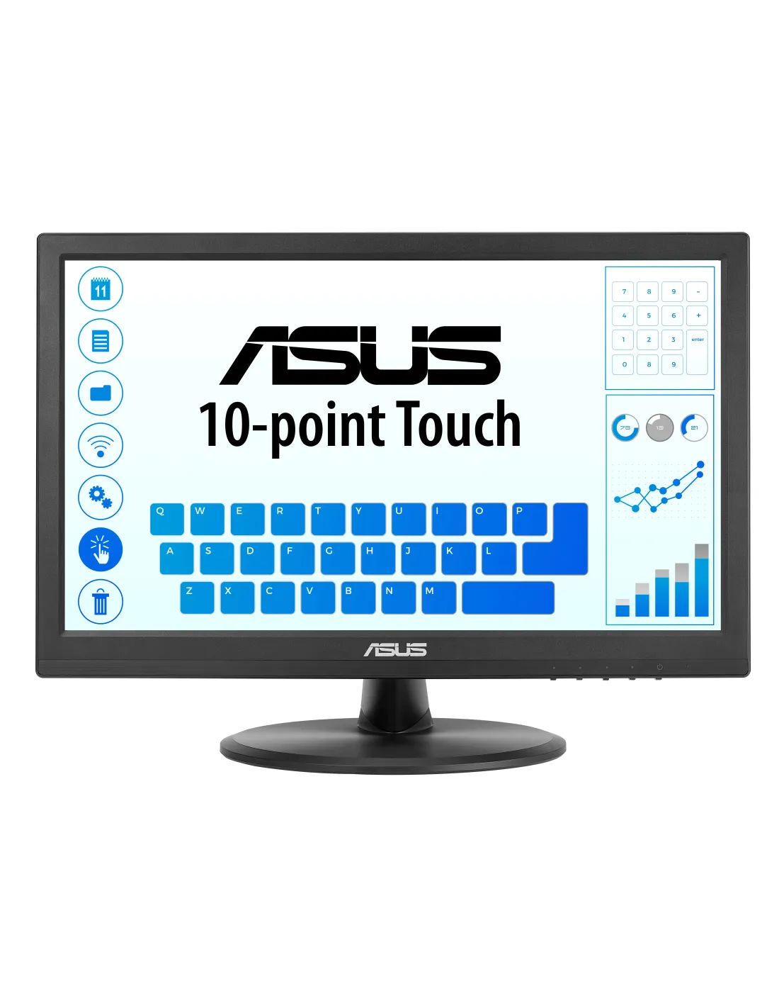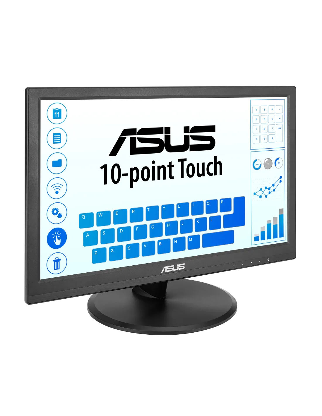 ASUS Touch VT169HE. Dimensioni diagonale schermo: 39,6 cm (15.6"), Risoluzione del display: 1920 x 1080 Pixel, Tipologia HD: Full HD, Tecnologia display: LED, Tempo di risposta: 5 ms, Rapporto d'aspetto nativo: 16:9, Angolo di visualizzazione (orizzontale): 170°, Angolo di visualizzazione (verticale): 170°. Montaggio standard VESA. Colore del prodotto: Nero