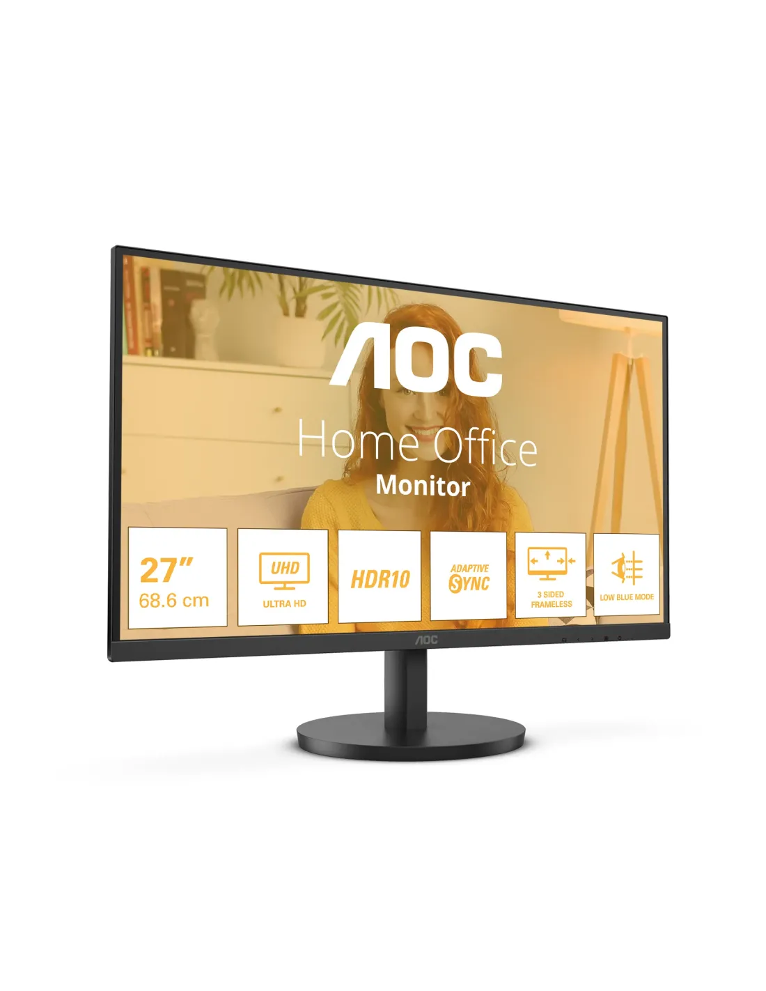 Migliora l'esperienza visiva con AOC U27B3M. Questo monitor UHD da 27" offre un pannello VA per contrasti profondi e colori ricchi e frequenza di 60 Hz per immagini fluide. Immagini chiare e senza tremolii con tecnologia AdaptiveSync e supporto HDR10. Monitor con tecnologia a bassa luce blu e senza sfarfallio per ridurre l'affaticamento, ideale per l'uso prolungato. Semplice base che rende il monitor stabile e affidabile nello spazio di lavoro.