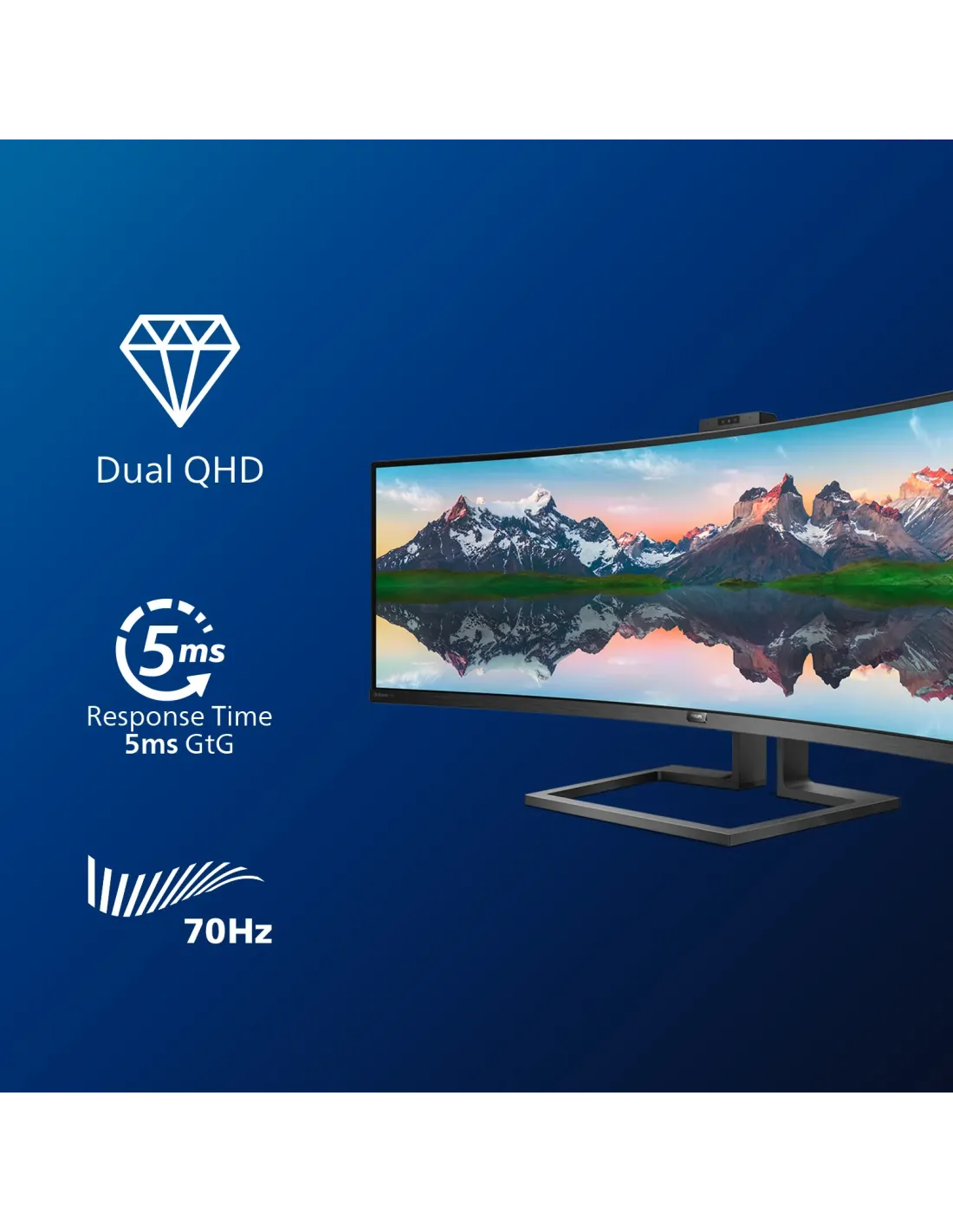 Philips P Line Display LCD curvo in 32:9 SuperWide 499P9H/00. Dimensioni diagonale schermo: 124 cm (48.8"), Risoluzione del display: 5120 x 1440 Pixel, Tipologia HD: UltraWide Dual Quad HD, Tecnologia display: LCD, Superficie display: Opaco, Tempo di risposta: 5 ms, Rapporto d'aspetto nativo: 32:9, Angolo di visualizzazione (orizzontale): 178°, Angolo di visualizzazione (verticale): 178°. Altoparlanti incorporati. Hub USB integrato, Versione dell'hub USB: 3.2 Gen 1 (3.1 Gen 1). Montaggio standard VESA, Regolazione altezza. Colore del prodotto: Nero