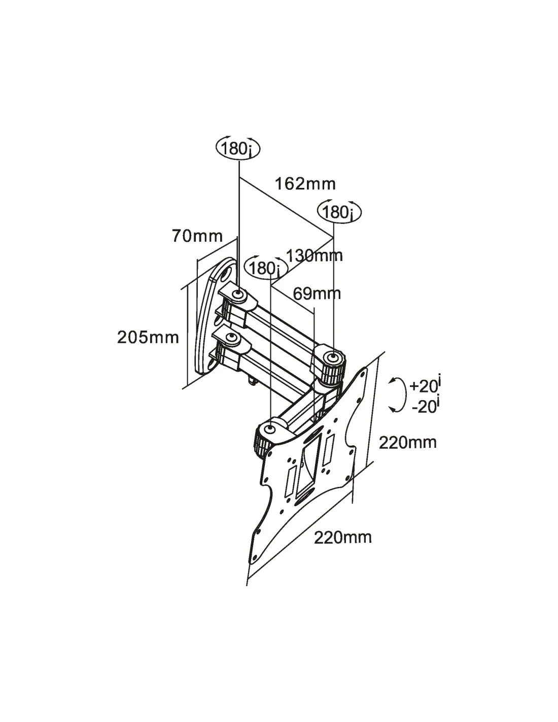 InLine Staffa da parete per TFT / LCD / LED / plasma, (23-42"), max. 30 kg. Peso massimo (capacità): 30 kg, Capienza minima dimensioni dello schermo: 58,4 cm (23"), Capienza massima dimensioni dello schermo: 58,4 cm (23"), Compatibilità interfaccia di montaggio (min): 100 x 100 mm, Compatibilità interfaccia di montaggio (max): 200 x 200 mm. Inclinazione: -20 - 20°, Angolo di rotazione: -90 - 90°, Distanza dalla parete (min): 10 cm, Distanza dal muro (massima): 39 cm. Colore del prodotto: Nero