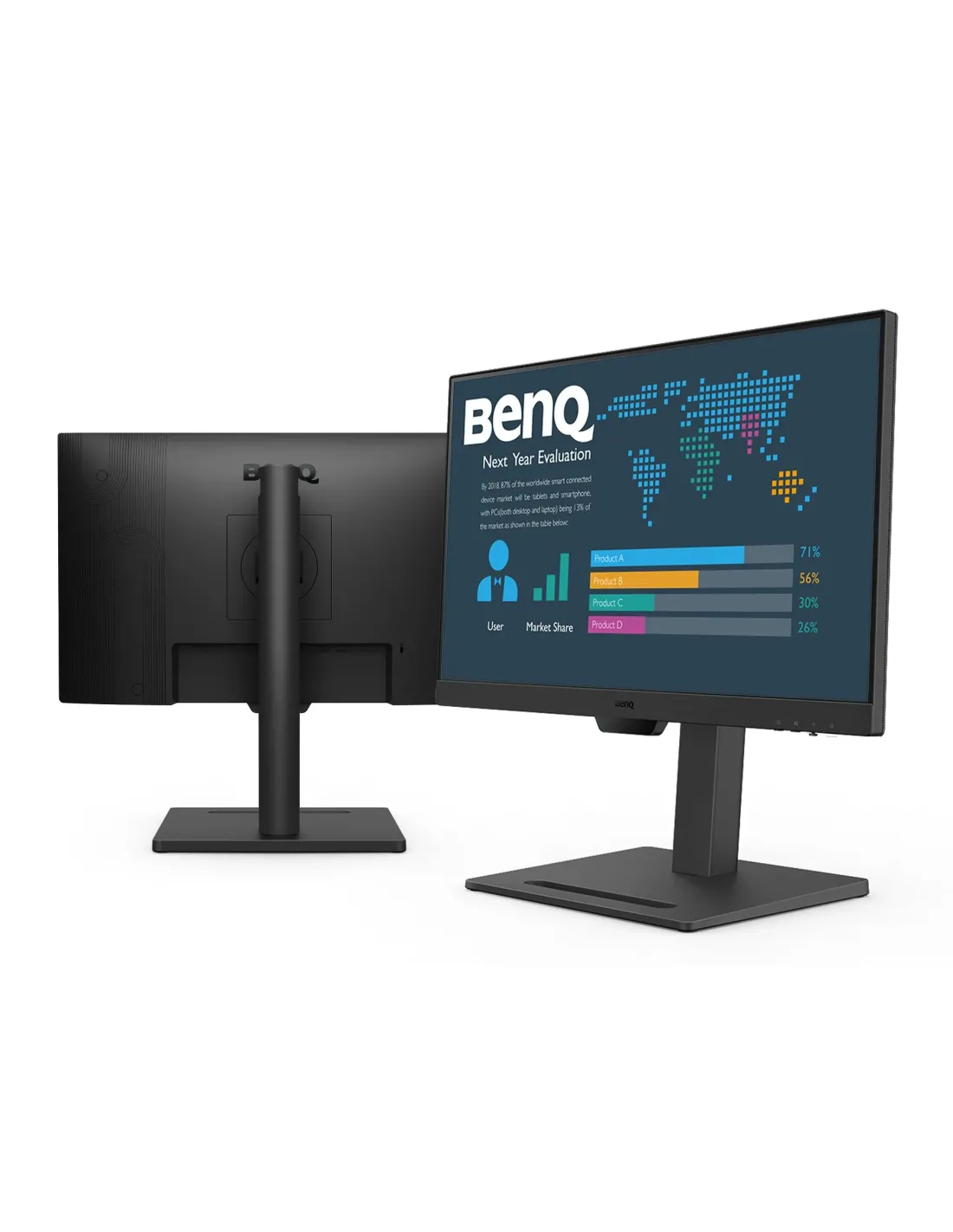 BenQ BL2490T. Dimensioni diagonale schermo: 60,5 cm (23.8"), Risoluzione del display: 1920 x 1080 Pixel, Tipologia HD: Full HD, Tempo di risposta: 5 ms, Rapporto d'aspetto nativo: 16:9, Angolo di visualizzazione (orizzontale): 178°, Angolo di visualizzazione (verticale): 178°. Altoparlanti incorporati. Montaggio standard VESA, Regolazione altezza. Colore del prodotto: Nero