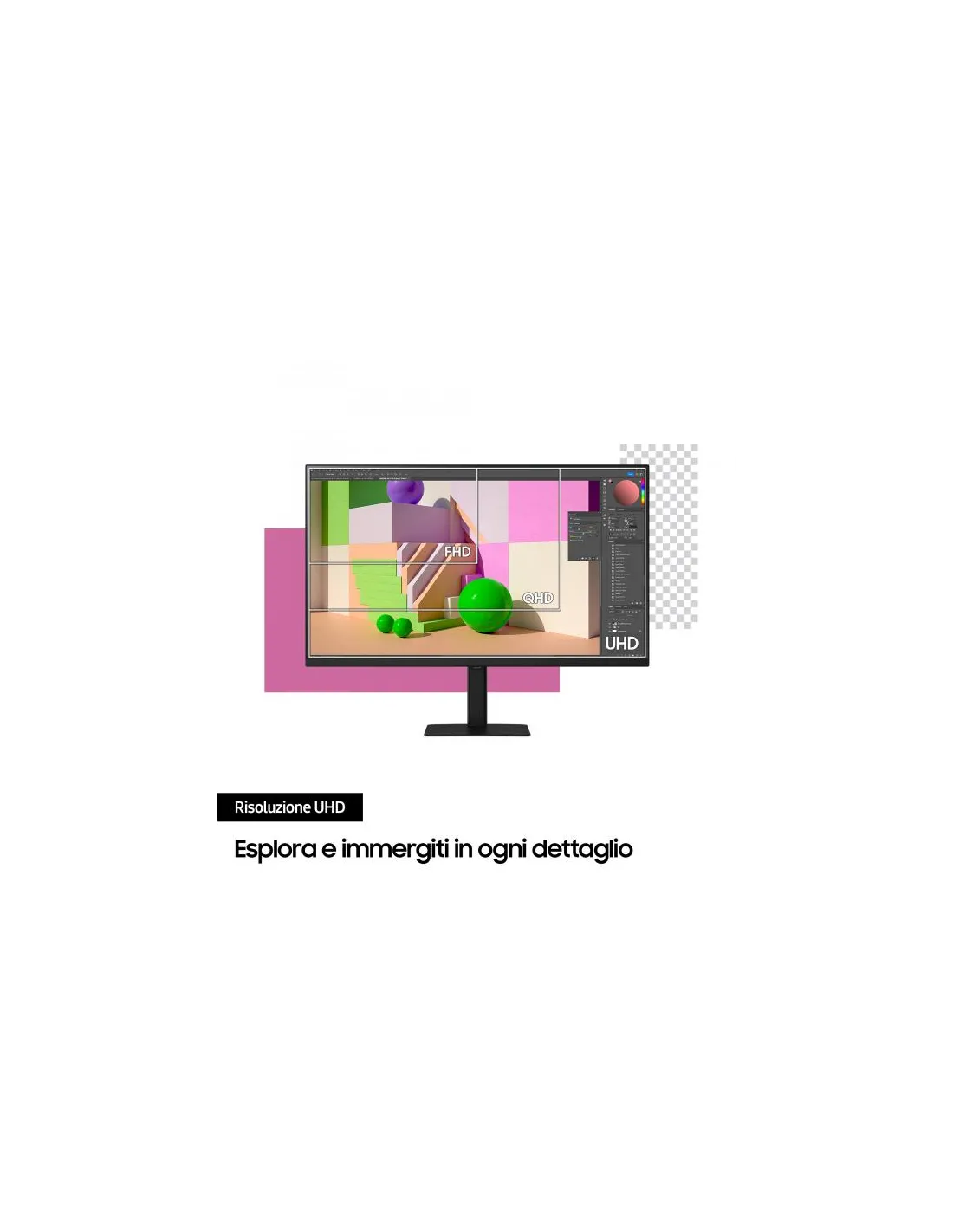 Una qualità delle immagini di livello professionale. La risoluzione UHD (3840x2160) aumenta il livello di dettaglio grazie a una maggiore densità di pixel. I professionisti potranno apprezzare i colori in tutti i dettagli e avranno a disposizione un maggiore spazio sullo schermo per riprodurre con la massima fluidità anche i motivi più intricati, diagrammi complessi e contenuti video dinamici.