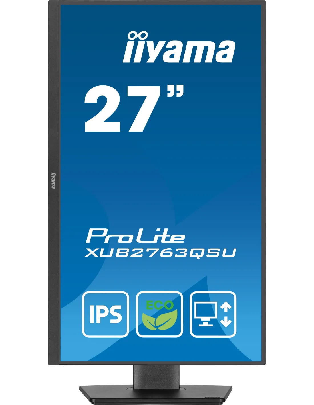 iiyama ProLite XUB2763QSU-B1. Dimensioni diagonale schermo: 68,6 cm (27"), Risoluzione del display: 2560 x 1440 Pixel, Tipologia HD: Quad HD, Tecnologia display: LED, Superficie display: Opaco, Tempo di risposta: 2 ms, Rapporto d'aspetto nativo: 16:9, Angolo di visualizzazione (orizzontale): 178°, Angolo di visualizzazione (verticale): 178°. Altoparlanti incorporati. Hub USB integrato, Versione dell'hub USB: 3.2 Gen 1 (3.1 Gen 1). Montaggio standard VESA, Regolazione altezza. Colore del prodotto: Nero