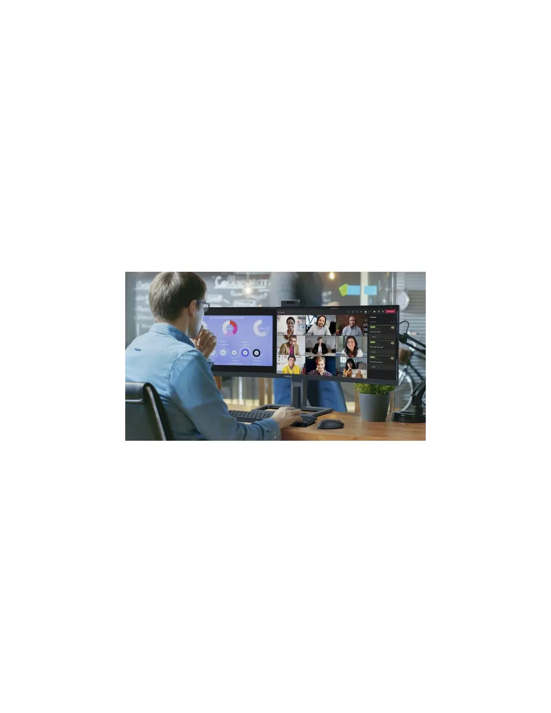 This USB-C monitor is for data transfer, power delivery and watching videos. The integrated 5 MP webcam delivers sharp images, and the noise cancelling mic lets people