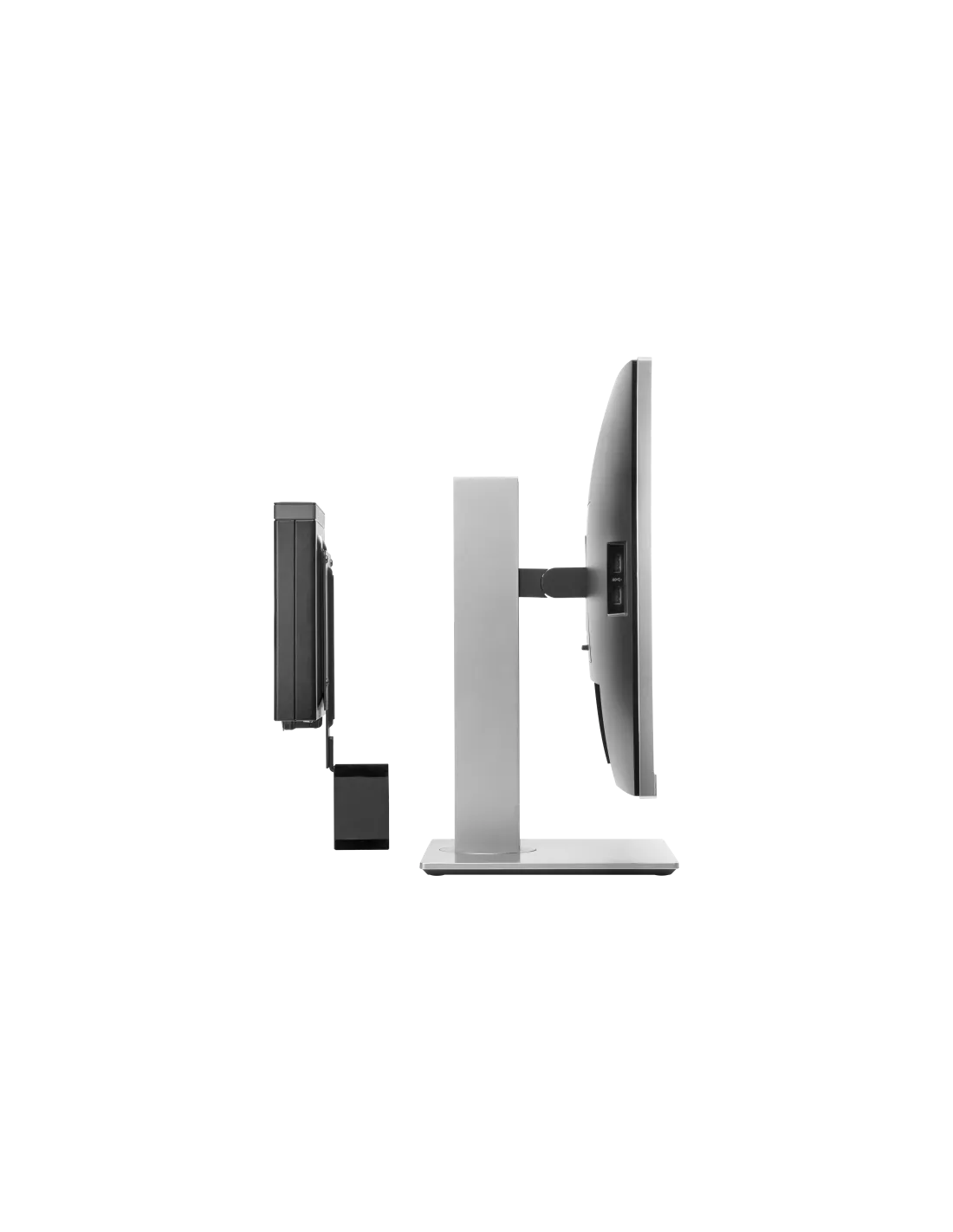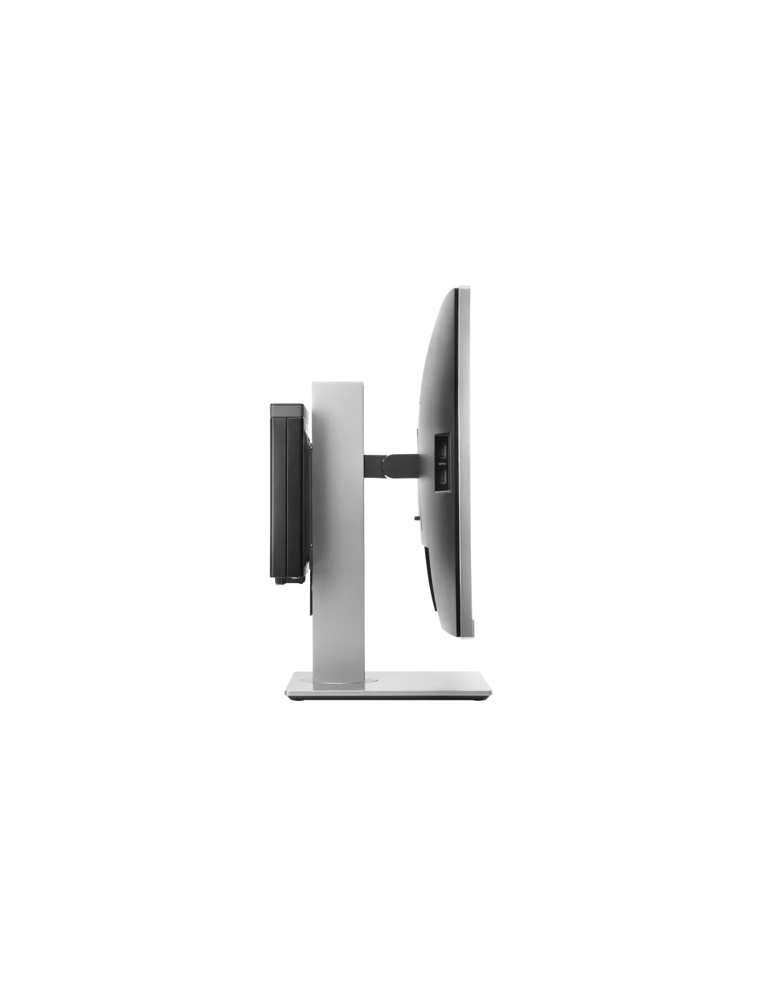 Ottimizza l'area di lavoro disponibile con una soluzione a ingombro ridotto. È sufficiente collegare la staffa al retro del sostegno del display e la piattaforma PC alla staffa. È semplicissimo! Riduzione dell'ingombro dei cavi grazie a cavi USB corti da A a B e DisplayPort™.
