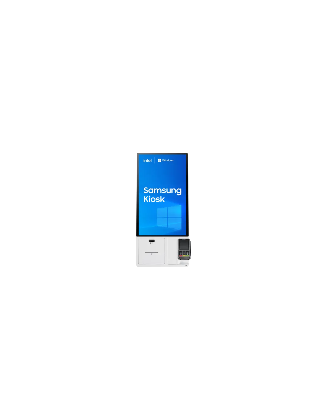 Progettato con un design modulare, il Kiosk Samsung consente pagamenti tramite carta di credito, codice a barre, QR code e NFC, ed è dotato di stampante integrata, eliminando la necessità di periferiche aggiuntive.