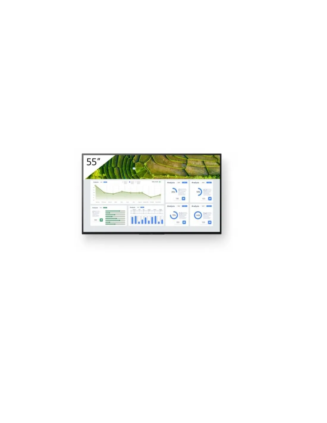 FW-55BZ30L da 55" offre un'ampia luminosità dello schermo di 440 nit. Le avanzate tecnologie di elaborazione delle immagini Sony ti assicurano che i contenuti appaiano al meglio. L'angolo di visualizzazione ultra ampio del pannello garantisce che tutti gli utenti della stanza possano godere di immagini nitide e luminose ovunque si trovino.