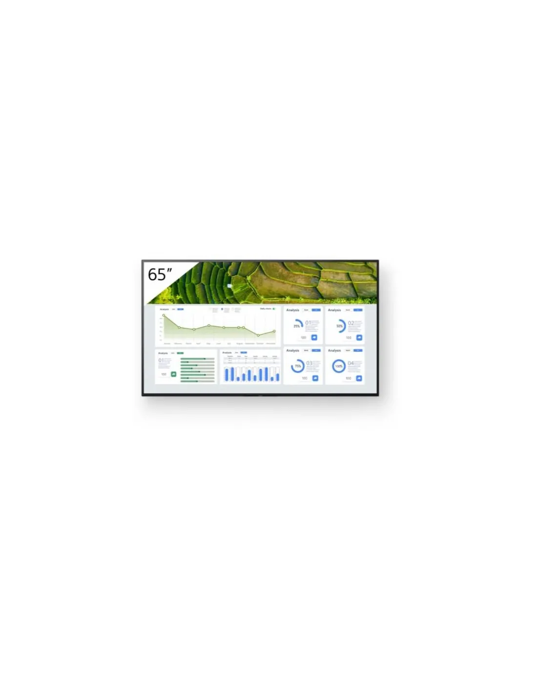 FW-65BZ30L da 65" offre un'ampia luminosità dello schermo di 440 nit. Le avanzate tecnologie di elaborazione delle immagini Sony ti assicurano che i contenuti appaiano al meglio. L'angolo di visualizzazione ultra ampio del pannello garantisce che tutti gli utenti della stanza possano godere di immagini nitide e luminose ovunque si trovino.