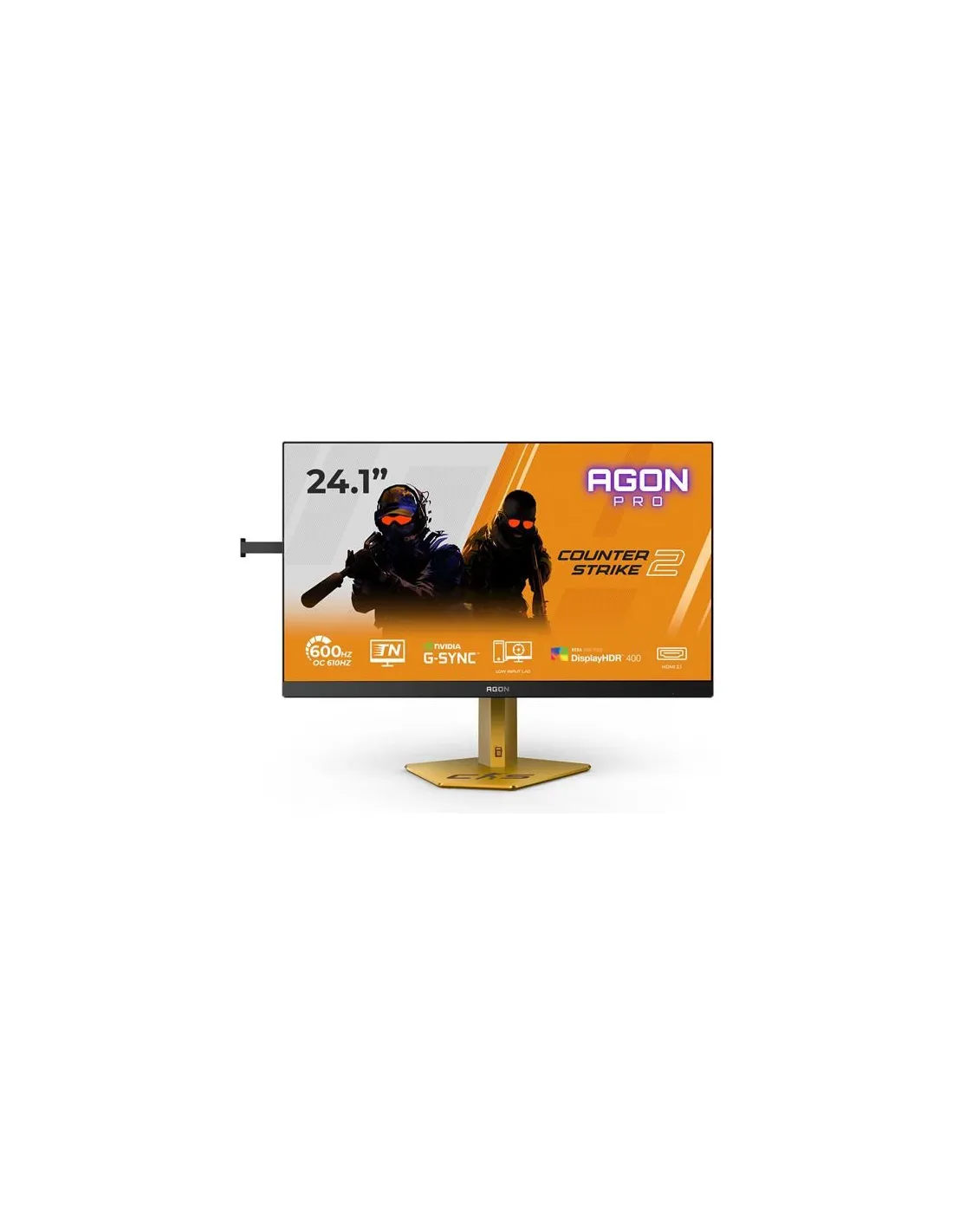AOC AGON PRO CS24A Monitor PC 61,2 cm (24.1") 1920 x 1080 Pixel Full HD LED NeroScatena la massima competitività con la 2a versione 24" 610 Hz del Counter-Strike 2Preparati a superare i limiti con il monitor CS24A progettato da una collaborazione rivoluzionaria ed esclusiva per Counter-Strike 2. Questo monitor dotato di un’incredibile frequenza di aggiornamento di 610 Hz su un pannello fulmineo TN eSports da 24 pollici offre immagini così fluide che sembra che il gioco si muova con te. Grazie al G-Sync, all’input lag bassissimo e alla modalità CS che cambia le carte in tavola, potrai vivere ogni momento di tensione con precisione millimetrica. Il monitor CS24A è dedicato ai professionisti che apprezzerano HDR400, HDMI 2.1, RGB Light FX e un supporto ergonomico per il massimo comfort in battaglia e poi, grazie al controllo G-Menu e un design ad alta velocità, non è un monitor qualunque ma il tuo invito al modo del dominio pieno di prestazioni eSports superiori e ridefinite.Frequenza di aggiornamento 610Hz (OC, 600Hz nativo)Vivi prestazioni esports ultra-fluide con il monitor AOC a frequenza di aggiornamento 610Hz (OC, 600Hz nativo). Abbinato a un tempo di risposta GTG di 0,5 ms, questo pannello Fast TN offre una chiarezza di movimento impeccabile per il gaming competitivo, assicurando che ogni frame conti.TN eSportsDomina con il pannello Fast TN eSports di AOC, che offre tempi di risposta GTG fulminei di 0,5 ms e frequenze di aggiornamento elevate fino a 610 Hz. Goditi immagini nitide, senza tearing e con input lag ultra-basso per una precisione competitiva senza rivali.G-Sync CompatibleOttieni una qualità delle immagini impeccabile sincronizzando le schede grafiche NVIDIA* di nuova generazione con questo monitor G-SYNC Compatible. *Fai riferimento al sito Web NVIDIA per l'elenco completo delle GPU compatibili con i monitor G-SYNC CompatibleLow Input LagScatena i tuoi riflessi passando alla modalità AOC Low Input Lag. Niente fronzoli grafici: questa modalità riconfigura il monitor per massimizzare i tempi di risposta e ottenere il massimo in termini di reattività.Vesa Certified DisplayHDR™ 400Anche il livello più basso della funzionalità High Dynamic Range (HDR) rappresenta un miglioramento significativo per i comuni monitor. La luminosità di picco di 400 cd/m² consente al display di affinare la qualità delle immagini con un ampio spettro cromatico e un contrasto più diversificato. La certificazione VESA garantisce ricchezza di dettagli e rappresentazioni realistiche di giochi e film.DESIGN ERGONOMICOSupporto ergonomico per mantenere il comfort e prevenire lo sforzo durante le lunghe sessioni di gioco. Offre un'ampia gamma di movimenti e facili regolazioni di altezza, inclinazione e rotazione, adattandosi alla corretta ergonomia e alle vostre preferenze personali.RGB LIGHT FXMassima immersione: i nostri monitor AOC sono dotati di un'illuminazione speciale sul retro del dispositivo che illumina la tua postazione da gaming in diversi colori.Scegli il colore che preferisci, sincronizzalo con gli altri dispositivi AOC e prova i vari schemi di accensione.