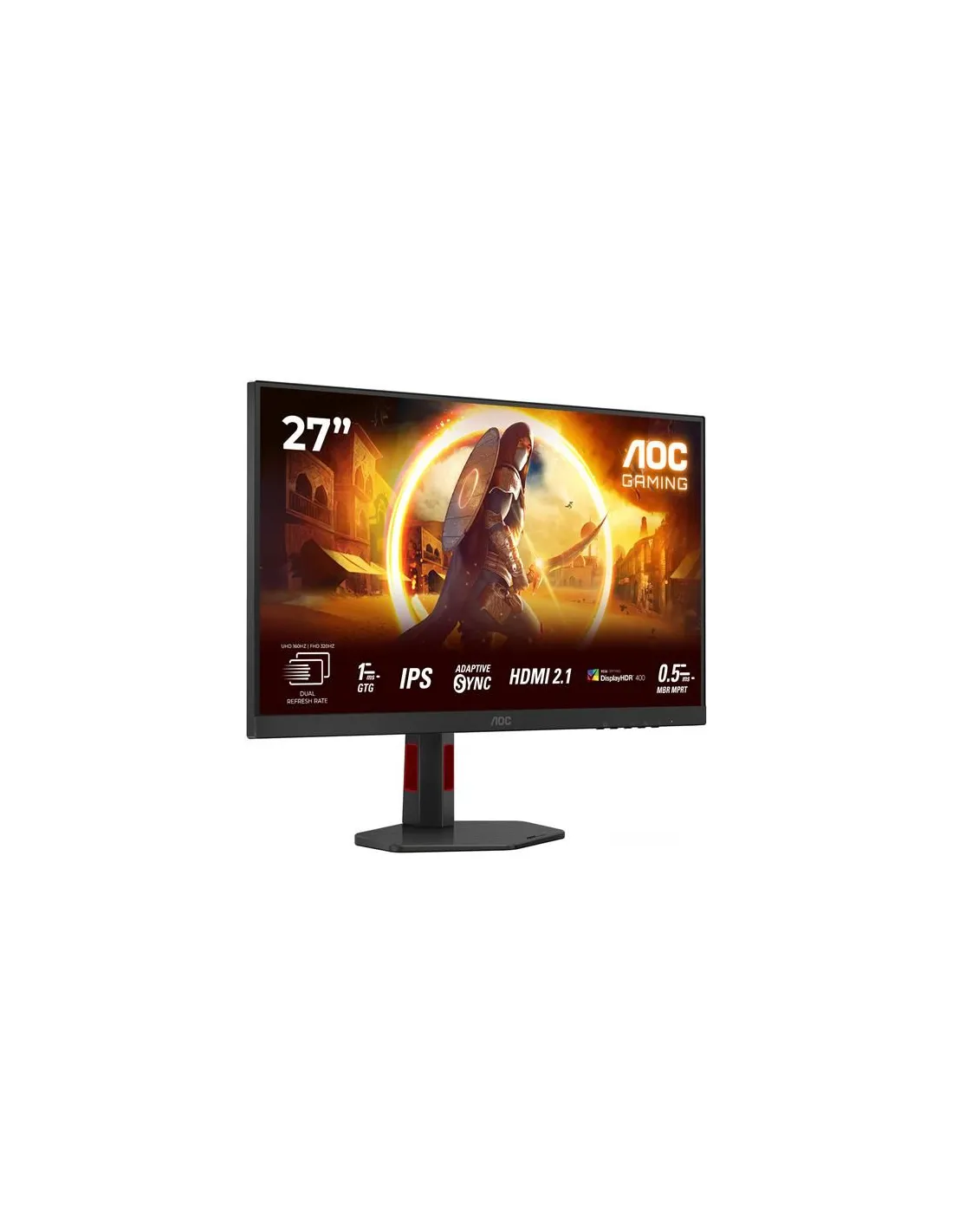 AOC G4 U27G4R Monitor PC 68,6 cm (27") 3840 x 2160 Pixel Quad HD LED Nero, RossoDomina la tua esperienza di gioco con il monitor Dual-Frame U27G4R, un display all'avanguardia che offre la massima flessibilità tra UHD a 160 Hz e FHD a 320 Hz.Scopri il monitor Dual-Frame U27G4R, che offre la possibilità di passare da risoluzioni UHD a 160 Hz a FHD a 320 Hz e frequenze di aggiornamento per la massima versatilità nel gaming e nella creazione di contenuti. Grazie al pannello Fast IPS, GtG da 1 ms e MPRT da 0,5 ms, potrai godere di prestazioni ultra reattive e immagini vivide. HDR400 e AdaptiveSync (G-Sync TBC) garantiscono un'azione fluida e senza interruzioni, mentre HDMI 2.1 garantisce una connettività superiore. Il design ergonomico della base per gli eSports garantisce comfort durante le sessioni più lunghe, rendendo l'U27G4R perfetto per un multitasking fluido e un gaming immersivo.Hub USBGli hub USB integrati nei monitor AOC assicurano la massima praticità e facilità d’uso quando siete alla scrivania. Le porte laterali sono facilmente raggiungibili anche senza guardare, perciò non dovrete perdere tempo a cercare una porta USB libera sul retro del case di un PC.DESIGN ERGONOMICOSupporto ergonomico per mantenere il comfort e prevenire lo sforzo durante le lunghe sessioni di gioco. Offre un'ampia gamma di movimenti e facili regolazioni di altezza, inclinazione e rotazione, adattandosi alla corretta ergonomia e alle vostre preferenze personali.Supporto per monitor e-sportIl nostro nuovo supporto. Progettato in collaborazione con professionisti di eSports, ti consente di massimizzare lo spazio libero per tutti i tuoi dispositivi periferici. La base del monitor è progettata per ridurre l'ingombro del monitor sulla tua scrivania, consentendoti anche di posizionare la tastiera sopra di esso. Lo stand include un sistema di gestione dei cavi per mantenere la scrivania pulita. Non importa in quale genere tu stia competendo, vogliamo che tu ti senta come un professionista.0.5ms MPRT - Moving Picture Response TimeMPRT è l'acronimo di Moving Picture Response Time. La tecnologia MPRT disabilita e abilita la retroilluminazione del monitor durante i cambi di immagine. Grazie al tempo ridotto di visualizzazione di un fotogramma sul monitor, gli effetti di "ghosting" e "sfocatura" vengono ridotti, risultando in un'esperienza di gioco più fluida.1ms tempo di risposta GTG - Grey-to-GreyGtG sta per Grey-To-Grey e rappresenta il tempo impiegato da un pixel per passare da un livello di grigio al successivo. Nei giochi, ogni millisecondo conta e può fare la differenza tra andare a segno o mancare un colpo. Il rapido tempo di risposta elimina anche le immagini fantasma e il motion blur.Fast IPSSblocca il tuo potenziale di gioco con i pannelli Fast IPS che offrono tempi di risposta dei pixel rapidi fino a 1 ms GtG. Dì addio al motion blur e goditi immagini più nitide, migliorando il targeting di precisione e migliorando le prestazioni nei giochi ad alta velocità. Scopri i vantaggi della veloce tecnologia IPS, inclusi colori vivaci e ampi angoli di visione, per un'esperienza di gioco coinvolgente e libera tutto il tuo potenziale.Risoluzione Full HDDesiderate guardare un film Blu-ray con una qualità d’immagine totale, divertirsi a giocare con immagini ad alta definizione o leggere testi nitidissimi nelle applicazioni per ufficio? Grazie alla risoluzione di 1920 x 1080 pixel Full HD di questo monitor tutto questo sarà possibile. A prescindere dal contenuto che intendete guardare, con la risoluzione Full HD sarà visualizzato con una straordinaria ricchezza di dettagli senza la necessità di una scheda grafica di alta fascia né di consumare molte delle vostre risorse di sistema.Vesa Certified DisplayHDR™ 400Anche il livello più basso della funzionalità High Dynamic Range (HDR) rappresenta un miglioramento significativo per i comuni monitor. La luminosità di picco di 400 cd/m² consente al display di affinare la qualità delle immagini con un ampio spettro cromatico e un contrasto più diversificato. La certificazione VESA garantisce ricchezza di dettagli e rappresentazioni realistiche di giochi e film.