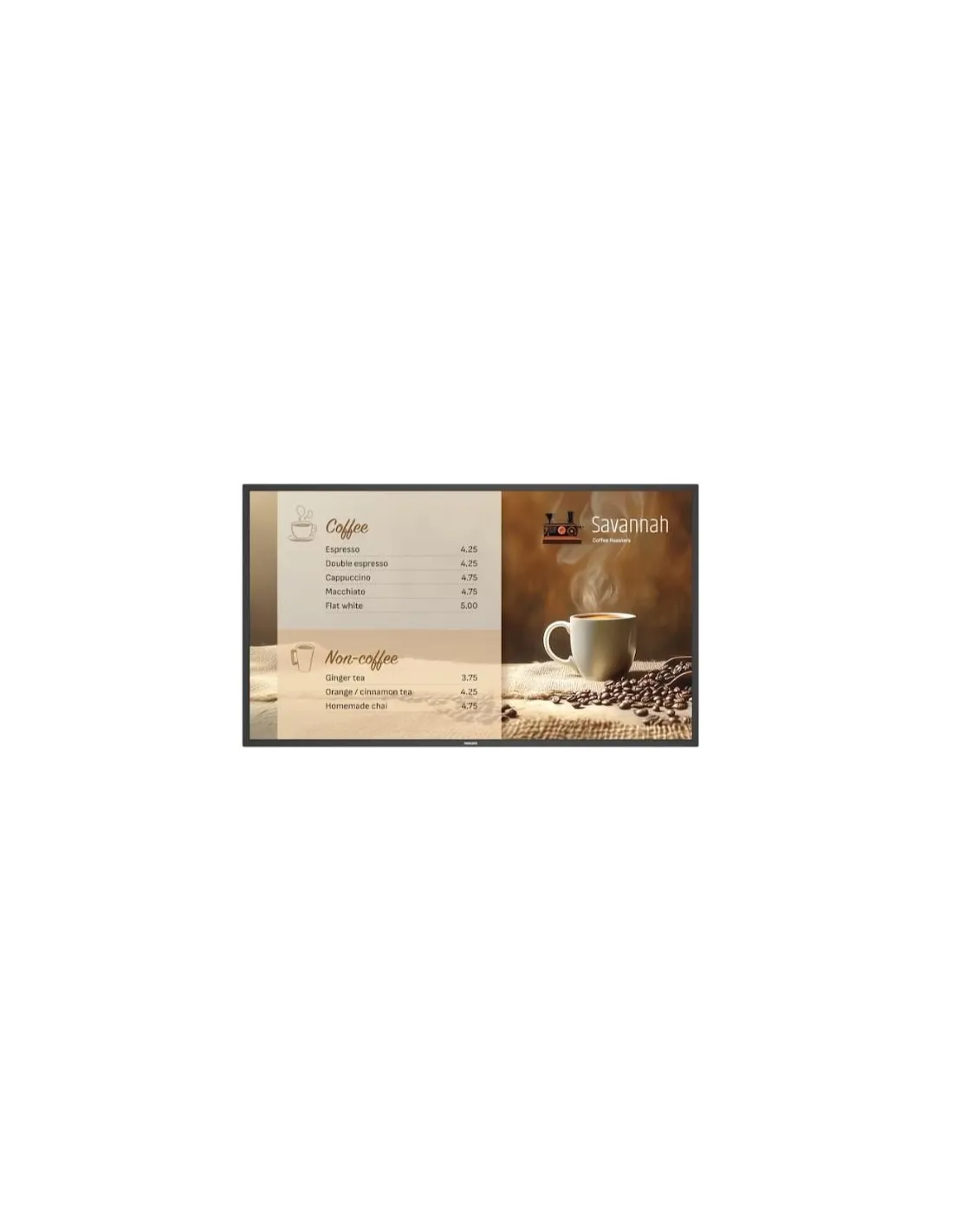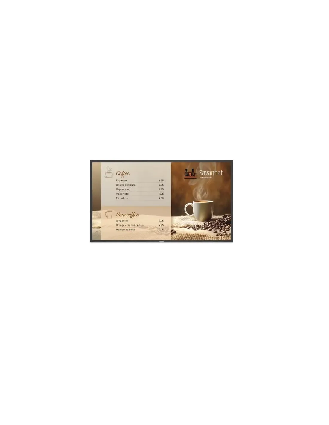 PhilipsMontaggio secondo le esigenze Installabile in verticale o in orizzontale, con varianti di dimensioni che includono 43", 50", 55" e 65" per adattarsi a una vasta gamma di scopi di installazione.