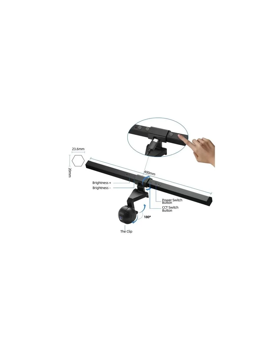 Il design a clip per l'installazione della lampada si adatta a qualsiasi monitor di spessore compreso tra 1 e 3 cm.