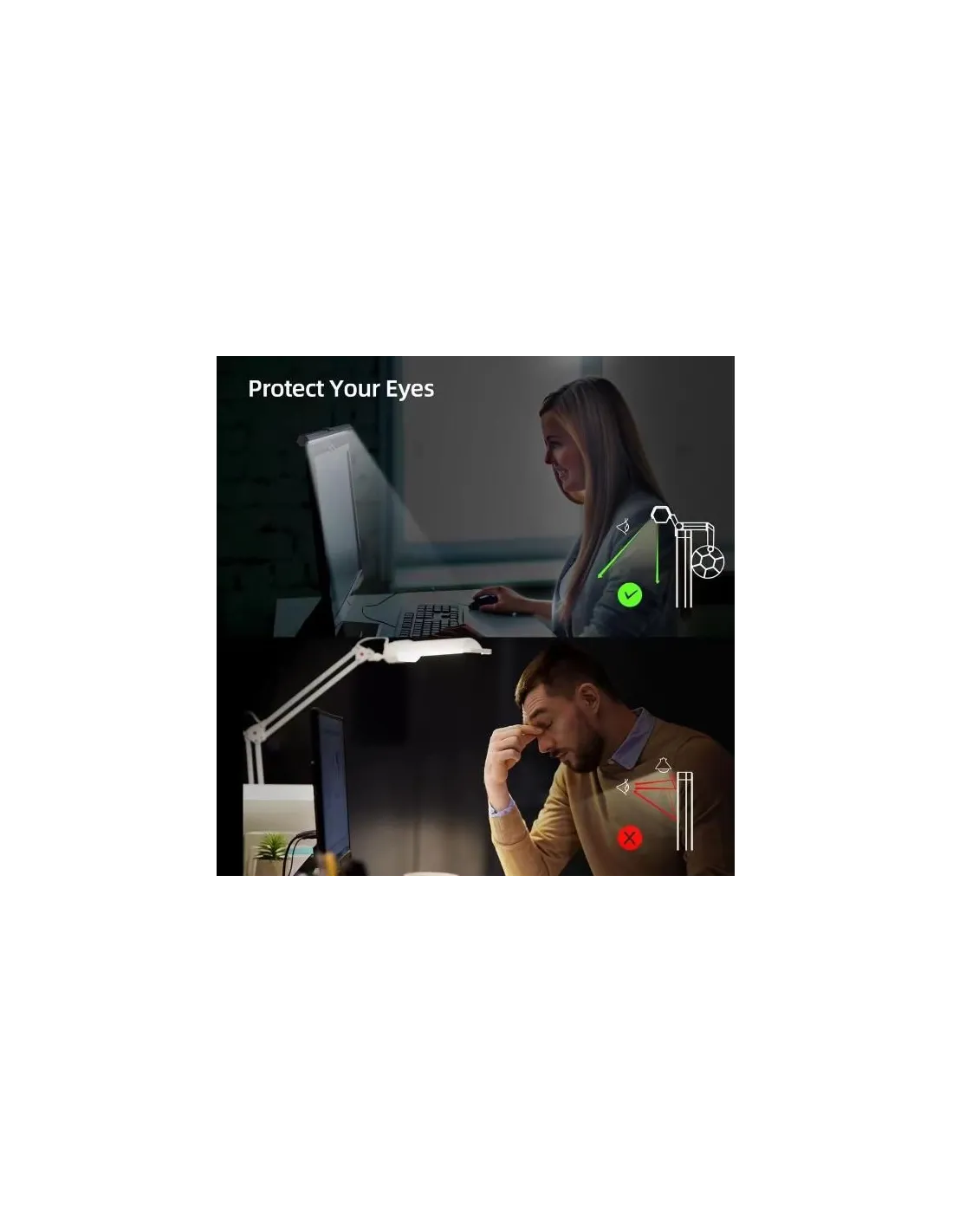La lampada monitor LED equip 245450 USB con design a sospensione, che adatta il percorso della luce asimmetrico, riduce il riflesso dello schermo e protegge efficacemente gli occhi. Il design a clip per installare la lampada da lavoro si adatta a qualsiasi monitor.
