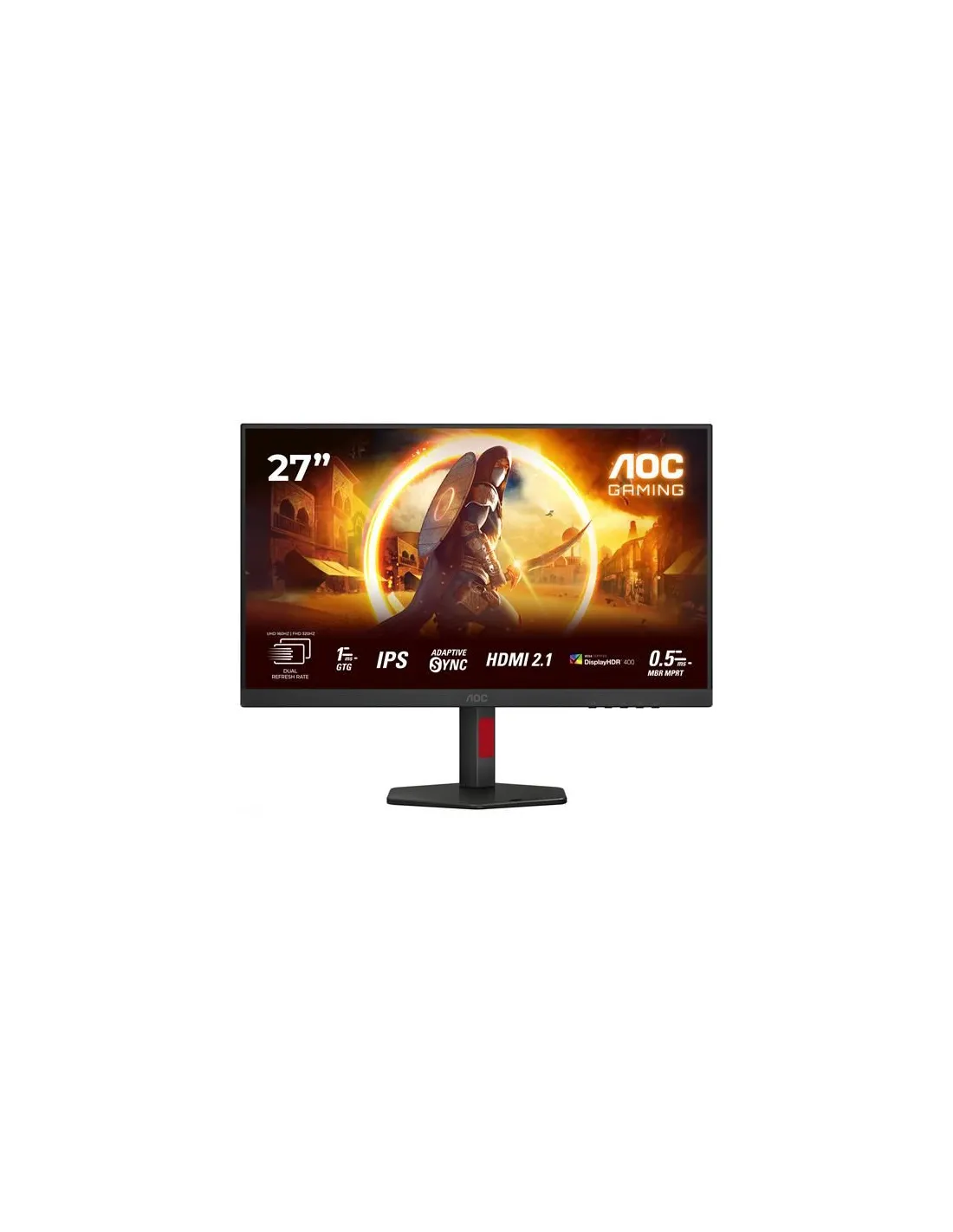 AOC G4 U27G4R. Dimensioni diagonale schermo: 68,6 cm (27"), Risoluzione del display: 3840 x 2160 Pixel, Tipologia HD: 4K Ultra HD, Tecnologia display: LED, Tempo di risposta: 1 ms, Rapporto d'aspetto nativo: 16:9, Angolo di visualizzazione (orizzontale): 178°, Angolo di visualizzazione (verticale): 178°. Hub USB integrato, Versione dell'hub USB: 3.2 Gen 1 (3.1 Gen 1). Montaggio standard VESA, Regolazione altezza. Colore del prodotto: Nero, Rosso
