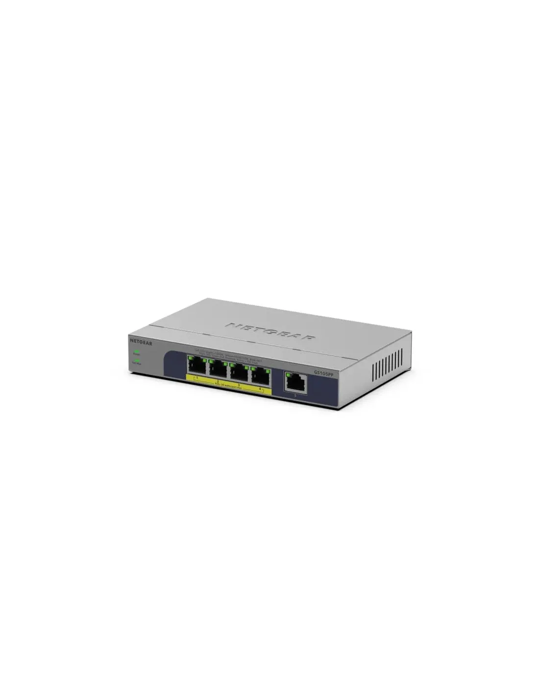 NetgearNETGEAR GS105PP, Non gestito, Gigabit Ethernet (10/100/1000), Full duplex, Supporto Power over Ethernet (PoE), Montaggio da desktop/parete
