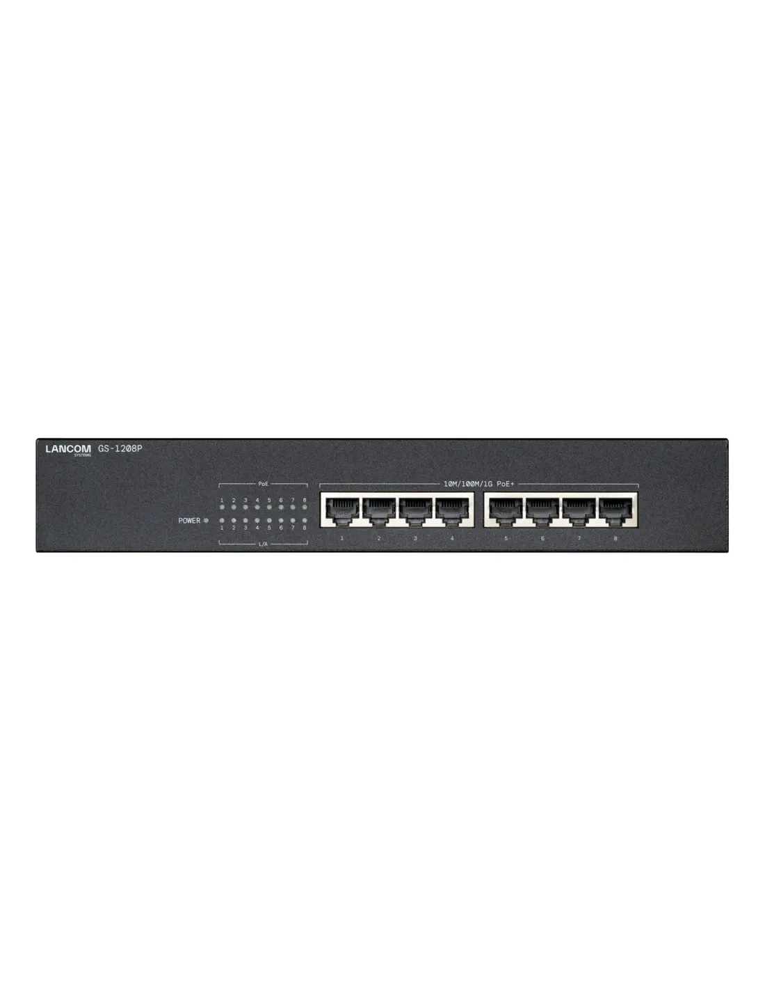 LANCOM SystemsGS-1208P, Non gestito, Gigabit Ethernet (10/100/1000), Supporto Power over Ethernet (PoE), Montaggio rack, 1U
