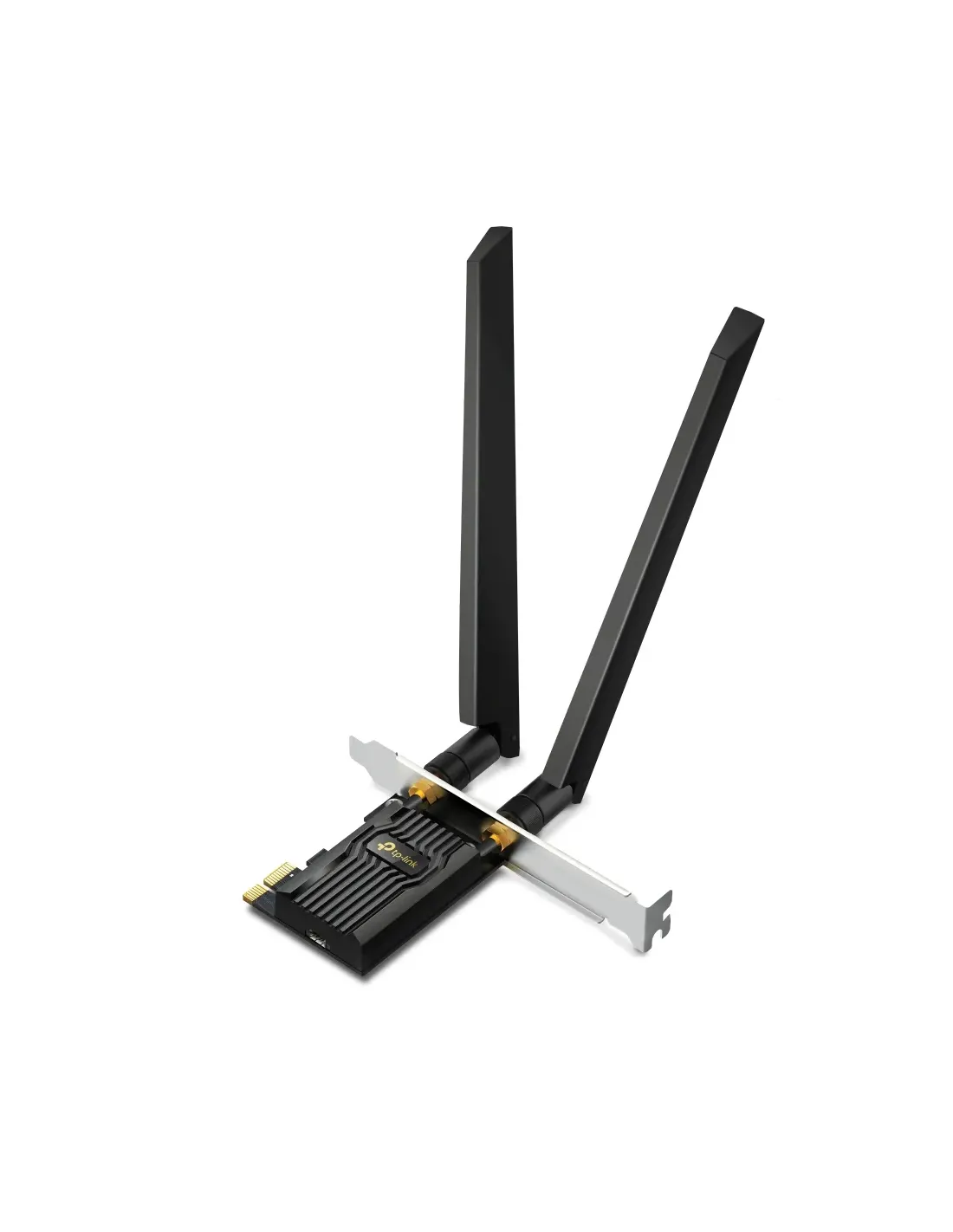 TP-Link Archer TXE72E. Interno. Tecnologia di connessione: Cablato, Interfaccia host: PCI Express, Interfaccia: WLAN / Bluetooth. Velocità massima di trasferimento dati: 2402 Mbit/s, Wi-Fi standard: Wi-Fi 6E (802.11ax), Banda Wi-Fi: Tri-band (2,4 GHz/5 GHz/6 GHz). Tipo di antenna: 2x2, Colore del prodotto: Nero