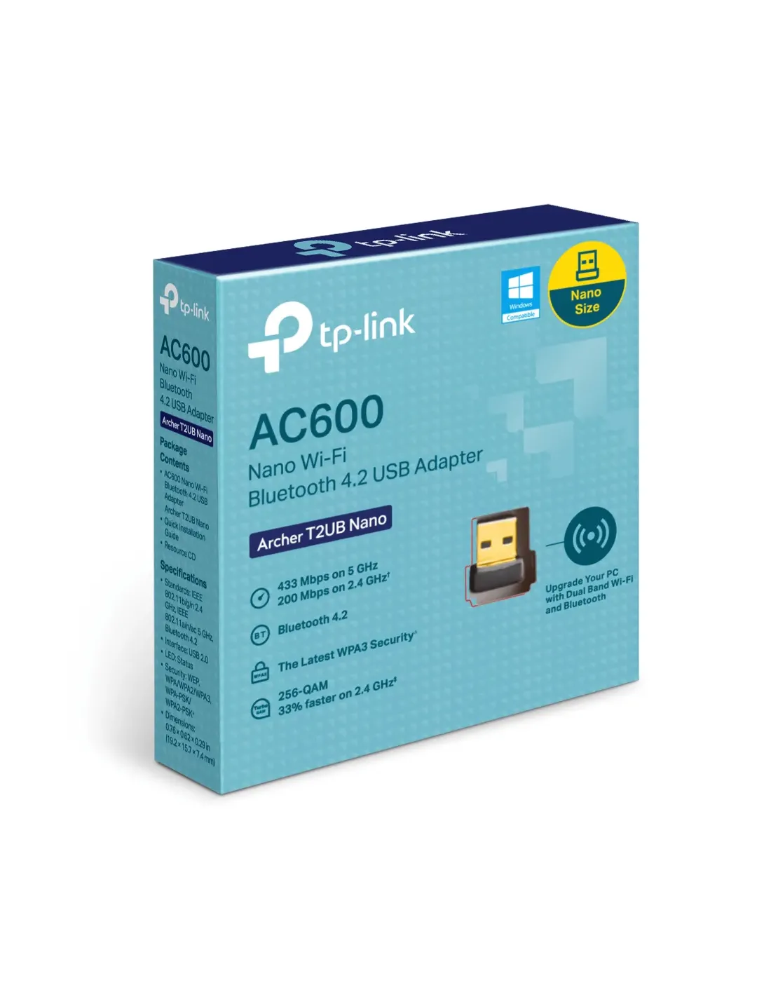 TP-Link Archer T2UB Nano. Tecnologia di connessione: Wireless, Interfaccia host: USB, Interfaccia: WLAN / Bluetooth. Velocità massima di trasferimento dati: 433 Mbit/s, Wi-Fi standard: Wi-Fi 5 (802.11ac), Banda Wi-Fi: Dual-band (2.4 GHz/5 GHz). Colore del prodotto: Nero