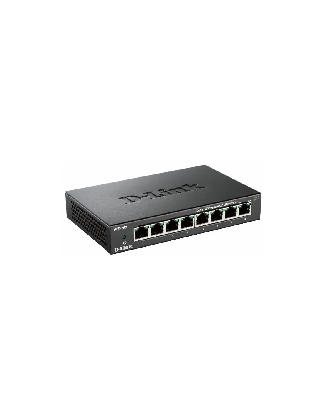 D-Link DES-108. Quantità di porte RJ-45: 8. Full duplex. Dimensioni tavola MAC: 1000 voci, Capacità di commutazione: 1,6 Gbit/s. Standard di rete: IEEE 802.1p, IEEE 802.3, IEEE 802.3az, IEEE 802.3u, IEEE 802.3x. Connettore di alimentazione: Jack DC-ingresso