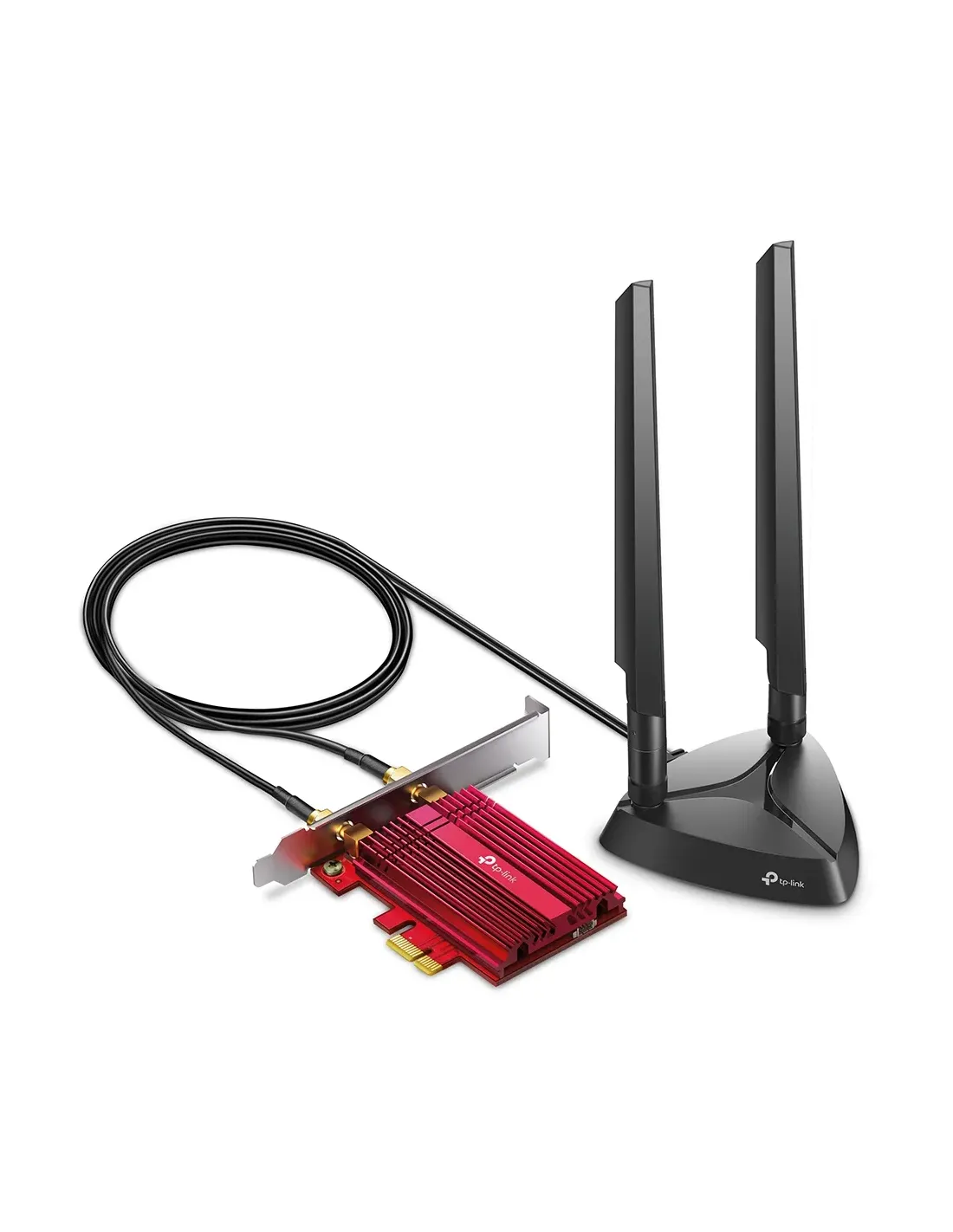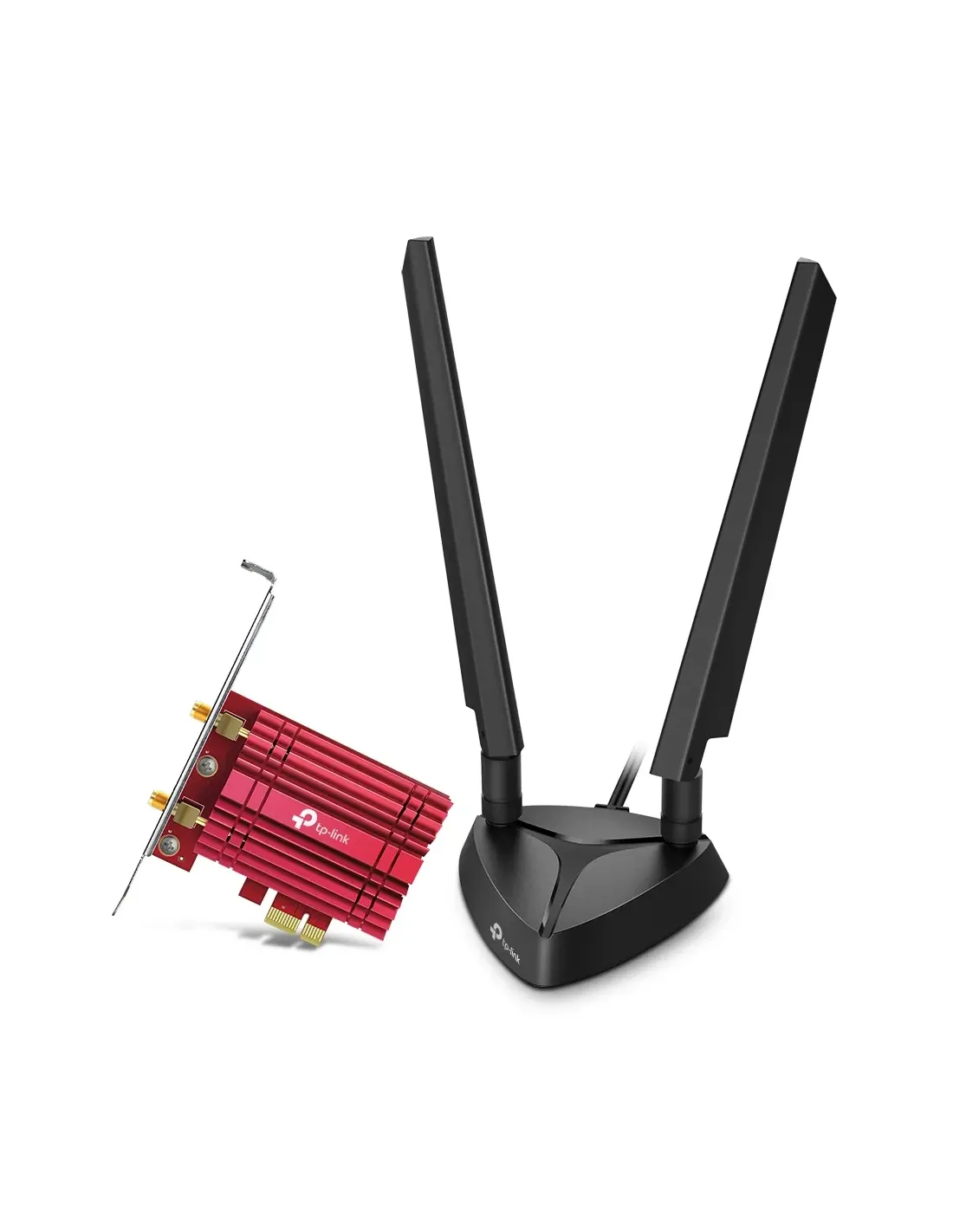 TP-Link Archer TXE75E. Interno. Tecnologia di connessione: Wireless, Interfaccia host: PCI Express, Interfaccia: WLAN / Bluetooth. Velocità massima di trasferimento dati: 5400 Mbit/s, Wi-Fi standard: Wi-Fi 6E (802.11ax), Banda Wi-Fi: Dual-band (2.4 GHz/5 GHz). Colore del prodotto: Nero, Rosso