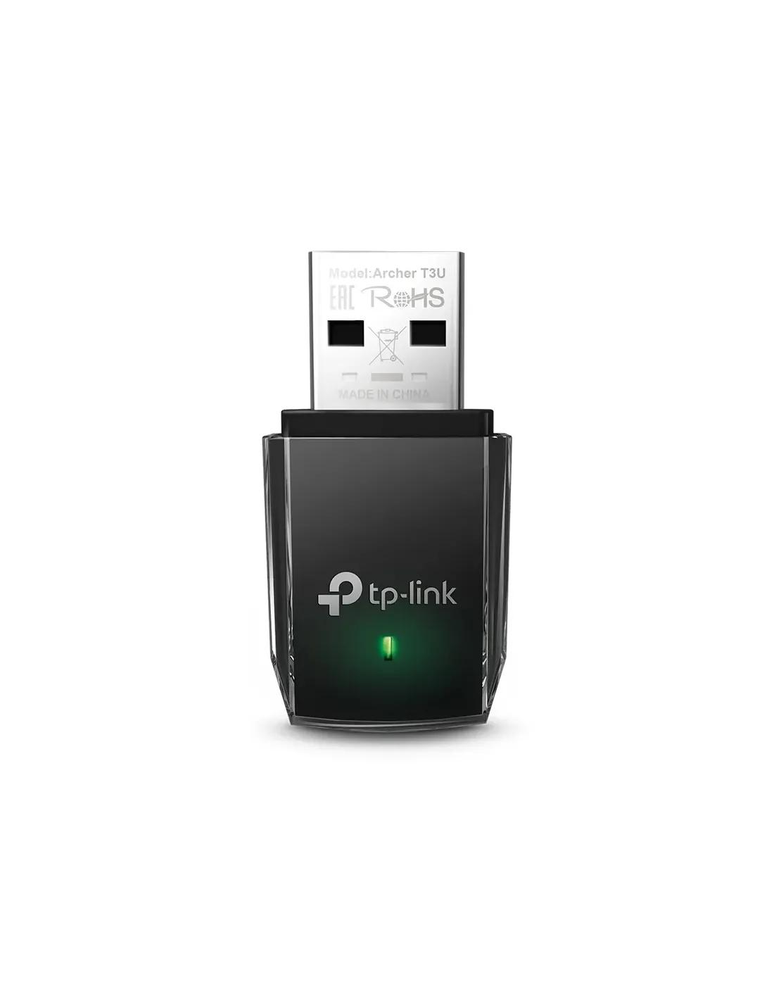 TP-Link Archer T3U. Tecnologia di connessione: Cablato, Interfaccia host: USB, Interfaccia: WLAN. Velocità massima di trasferimento dati: 867 Mbit/s, Wi-Fi standard: Wi-Fi 5 (802.11ac), Banda Wi-Fi: Dual-band (2.4 GHz/5 GHz). Alimentazione USB. Colore del prodotto: Nero