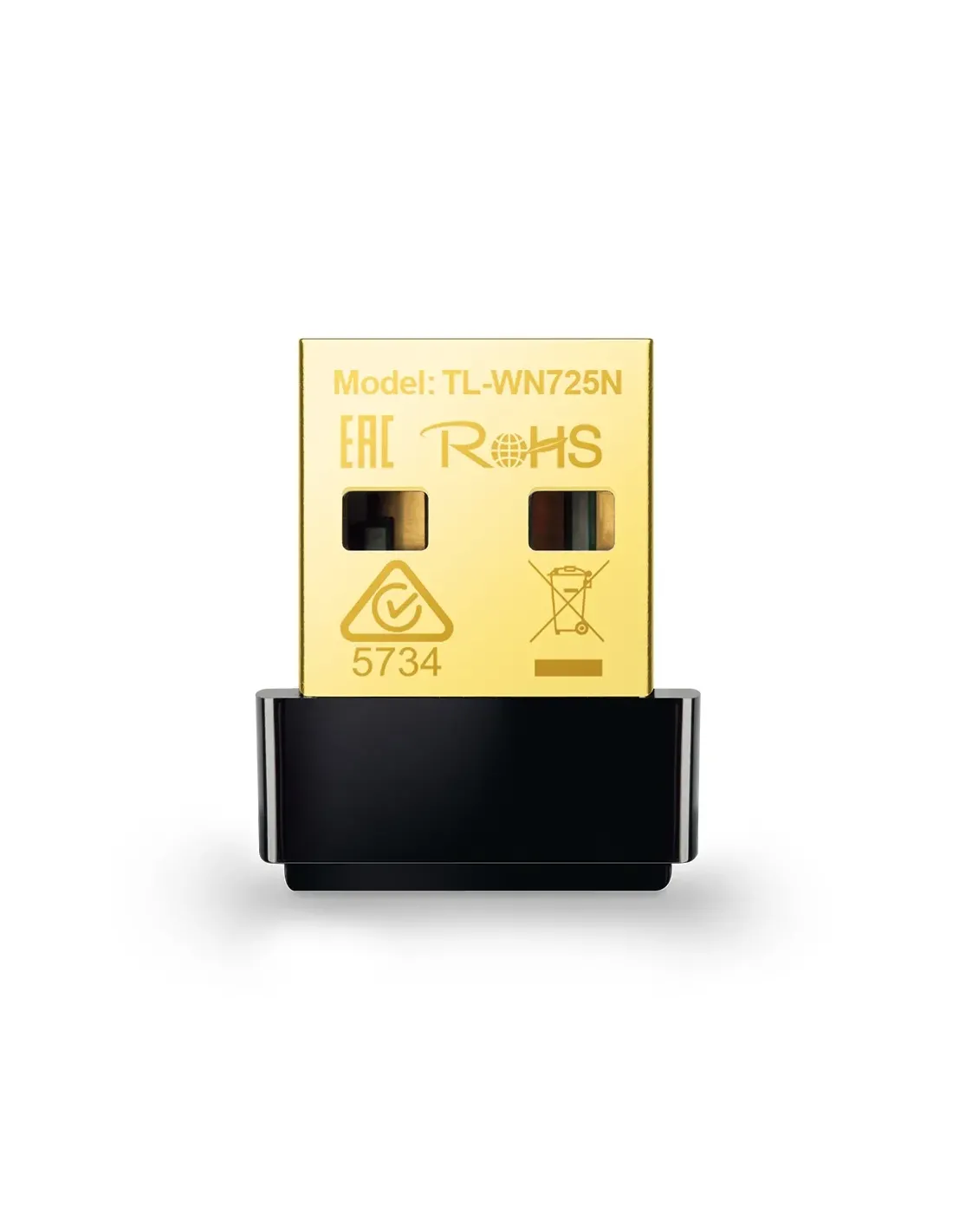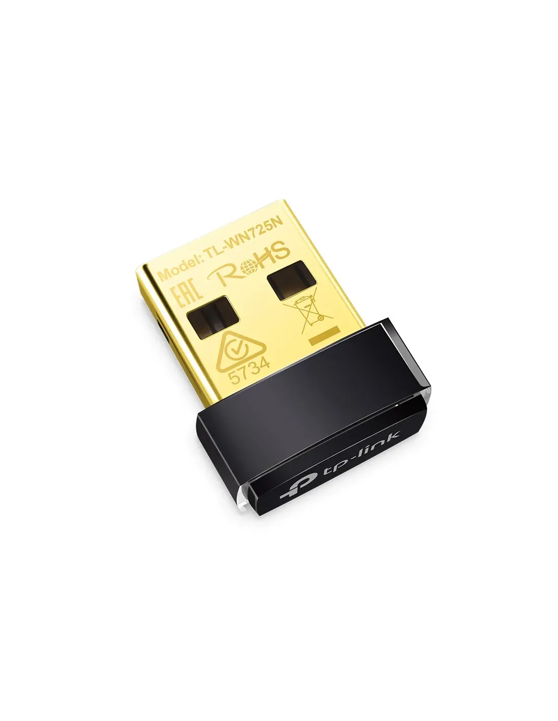 TP-Link TL-WN725N Adattatore USB scheda di rete wireless 150Mbps. Tecnologia di connessione: Wireless, Interfaccia host: USB, Interfaccia: WLAN. Velocità massima di trasferimento dati: 150 Mbit/s, Wi-Fi standard: Wi-Fi 4 (802.11n), Banda Wi-Fi: Banda singola (2.4 GHz). Alimentazione USB. Colore del prodotto: Nero