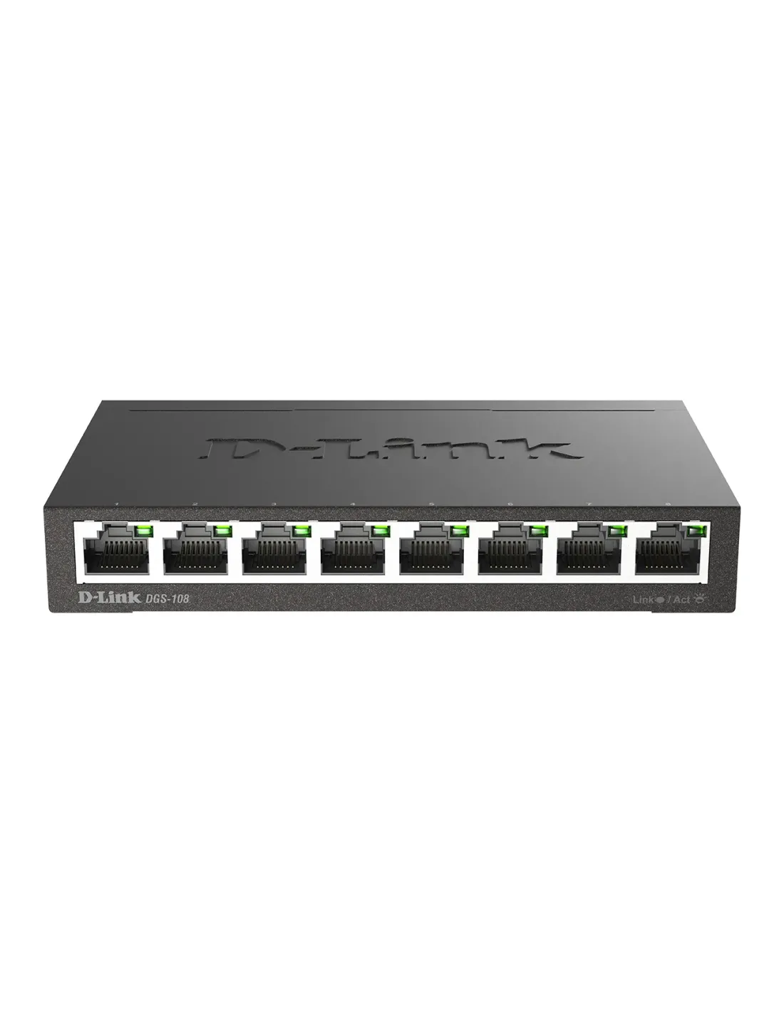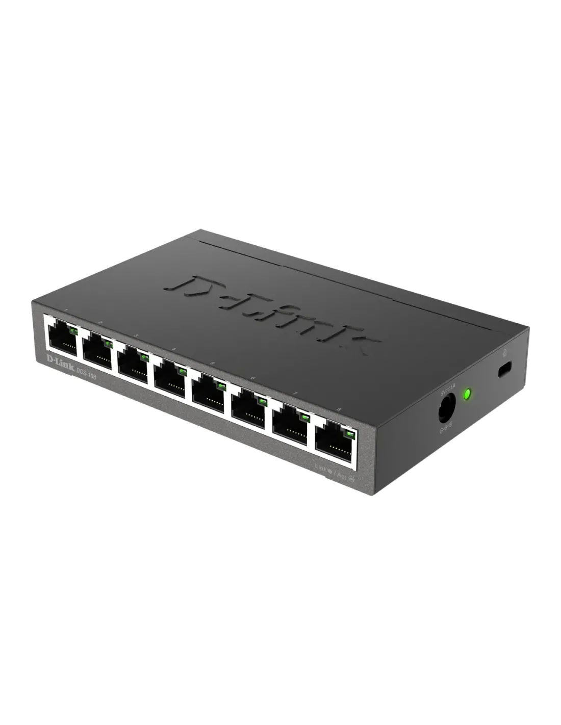 D-Link DGS-108. Tipo interruttore: Non gestito, Livello del commutatore: L2. Tipo di porte RJ-45: Gigabit Ethernet (10/100/1000), Quantità di porte RJ-45: 8. Full duplex. Dimensioni tavola MAC: 4000 voci, Capacità di commutazione: 16 Gbit/s. Standard di rete: IEEE 802.1p, IEEE 802.3, IEEE 802.3ab, IEEE 802.3az, IEEE 802.3u, IEEE 802.3x. Connettore di alimentazione: Jack DC-ingresso
