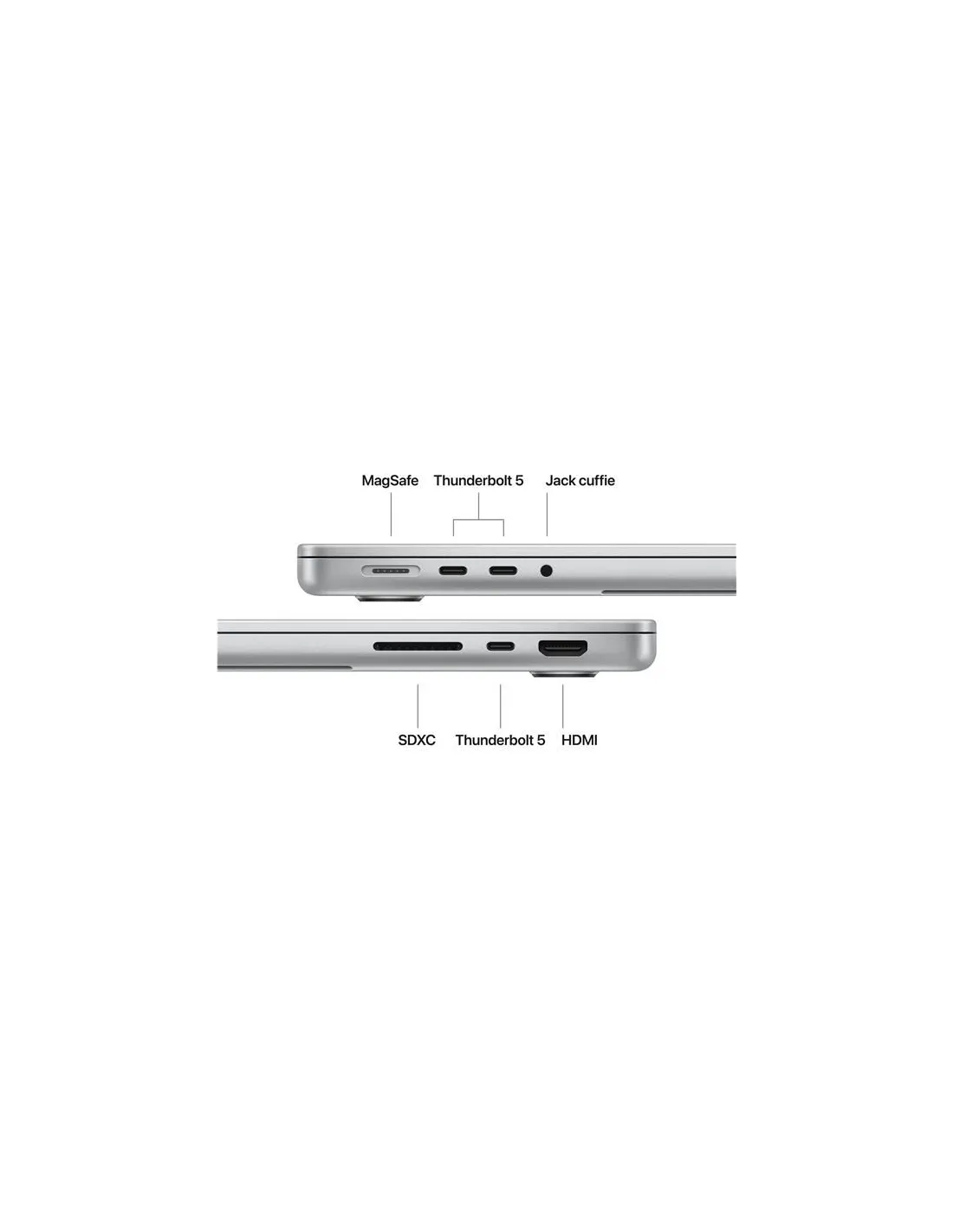Apple MacBook Pro 14" M5 Pro chip 15-core CPU 16-core GPU, 24GB, 1TB SSD - ArgentoMacBook Pro 14". La velocità è di famiglia. MacBook Pro 14" con chip M5 Pro o M5 Max ti offre velocità di un altro livello e potenti funzioni AI on device per lavorare, creare e fare tutto ciò che ti piace. Ha una batteria che dura un giorno intero e uno spettacolare display Liquid Retina XDR: è Pro in tutti i sensi.Caratteristiche principali - ALLACCIA LE CINTURE — Oltre a una CPU di nuova generazione, una memoria unificata più rapida e archiviazione SSD fino a due volte più scattante, i chip M5 Pro e M5 Max hanno una GPU più potente con un Neural Accelerator integrato in ogni core, che aumenta la velocità di prestazioni AI e addestramento on device. Così puoi sfrecciare anche nei lavori più complessi.- PROGETTATO PER L’AI — Il chip Apple e tutti i principali componenti che lo alimentano sono progettati per gestire carichi di lavoro AI on device impegnativi, come l’inferenza e l’addestramento di modelli linguistici di grandi dimensioni (LLM). E Apple Intelligence rende più facile scrivere, creare e fare tutto ciò che vuoi, con funzioni di ultima generazione per la tutela della privacy.- UN GIORNO INTERO DI BATTERIA — MacBook Pro ti dà performance incredibili anche quando non è collegato alla corrente.- MACOS METTE IL TURBO ALLE APP — Le tue app preferite, anche quelle incluse come FaceTime e Messaggi, vanno a tutta velocità su macOS. E grazie alla protezione integrata contro i virus e agli aggiornamenti software gratuiti, il tuo Mac resta sempre efficiente e sicuro.- TI PIACE L’IPHONE? ANCHE IL MAC TI CONQUISTERÀ – Il Mac funziona in perfetta sintonia con gli altri dispositivi Apple. Puoi fare copia e incolla dall’iPhone al Mac, e anche usare il Mac per inviare messaggi di testo o fare e ricevere chiamate FaceTime.- BRILLANTE DISPLAY PRO — Il display Liquid Retina XDR da 14,2" ha 1600 nit di luminosità di picco, fino a 1000 nit di luminosità costante e un contrasto di 1.000.000:1.- VIDEOCAMERA E AUDIO EVOLUTI — La videocamera 12MP Center Stage ti tiene sempre al centro della scena, mentre i tre microfoni di livello professionale e i sei altoparlanti con audio spaziale e supporto per Dolby Atmos garantiscono un sonoro ottimale.- SI CONNETTE A TUTTO — Ha tre porte Thunderbolt 5, una porta di ricarica MagSafe 3, uno slot SDXC card, una porta HDMI, un jack per cuffie e il chip wireless N1 progettato da Apple per le tecnologie Wi Fi 7 e Bluetooth 6. E con il chip M5 Pro puoi collegare fino a tre monitor esterni, che diventano quattro con il chip M5 Max.- ALIMENTATORI – N.B. MacBook Pro (14") con M5 Pro e M5 Max include un cavo di ricarica da USB C a MagSafe 3 senza alimentatore. Per ricaricare questo dispositivo è necessario un alimentatore USB C o un’altra fonte di alimentazione USB PD da almeno 70W. Per una ricarica ottimale, Apple consiglia l’alimentatore USB C Apple da 70W, oppure l’alimentatore USB C Apple da 96W per sfruttare la ricarica rapida (fino al 50% di carica in 30 minuti).M5, M5 Pro o M5 Max? Sarà una scelta rapida.Questa è la nostra serie di chip più evoluta mai creata per un portatile professionale. Con le fenomenali prestazioni della CPU single-thread e multi-thread, e una memoria unificata più scattante, i chip della squadra M5 ti danno una velocità che sfiora l’impossibile. L’archiviazione SSD è fino a due volte più rapida di prima. E grazie ai potenti Neural Accelerator, sfrecci anche nelle attività che usano l’intelligenza artificiale.Progettato per l’AI. A partire dal chip.I chip Apple e tutti i principali sottosistemi che li alimentano sono progettati per l’intelligenza artificiale. Si tratta di una vera e propria piattaforma che raggruppa hardware, software e tutto l’ecosistema Apple. Così puoi far lavorare sodo l’AI on-device, con un’efficienza energetica incredibile. E ovviamente anche la sicurezza e la privacy sono parte integrante del sistema.Apple Intelligence, al tuo servizio.Con Apple Intelligence scrivere, creare e fare tutto ciò che vuoi diventa più facile. Trasforma una nota preparata al volo in un annuncio impeccabile. Elimina gli elementi di distrazione dalle foto con lo strumento Ripulisci. Crea immagini sfruttando i nuovi stili di ChatGPT su Image Playground. E usa le azioni intelligenti nell’app Comandi Rapidi per costruirti le automazioni che preferisci: per esempio confrontare la trascrizione di un audio con gli appunti che hai preso ed estrarre informazioni da un PDF. Apple Intelligence è l’intelligenza artificiale pensata apposta per te.Un giorno intero di autonomia. Molla la presa.MacBook Pro ha l’autonomia migliore di sempre su un Mac: fino a 24 ore, per lavorare, creare e giocare tutto il giorno. Ogni modello mantiene lo stesso livello di prestazioni anche quando non è collegato alla corrente. Così puoi concentrarti su quello che stai facendo e dare sfogo alla tua creatività, senza perdere tempo a cercare una presa. E quando sei a corto d’energia, grazie alla ricarica rapida ti bastano 30 minuti per far arrivare la batteria al 50%.Insieme sono ancora meglio.Mac e iPhone sono già straordinari da soli, ma insieme fanno faville. Grazie alle funzioni di Continuity, puoi passare da un dispositivo all’altro in un attimo per condividere file e foto o continuare i lavori iniziati.Per tutti i gusti e le ambizioni.Ci sono decine di migliaia di app ottimizzate per i chip Apple: dagli strumenti che usi ogni giorno ai tuoi giochi preferiti, fino alle app professionali più potenti. Su MacBook Pro vanno tutte a gonfie vele.Ti illumini d’immenso.Che tu sia su una terrazza soleggiata o in uno studio poco illuminato non fa differenza: lavori sempre al meglio. Lo splendido display Liquid Retina XDR offre 1600 nit di luminosità HDR di picco,2 e fino a 1000 nit per le immagini SDR in pieno sole, così hai una visione ottimale anche quando sei all’aperto. E in ambienti più bui, la lumi