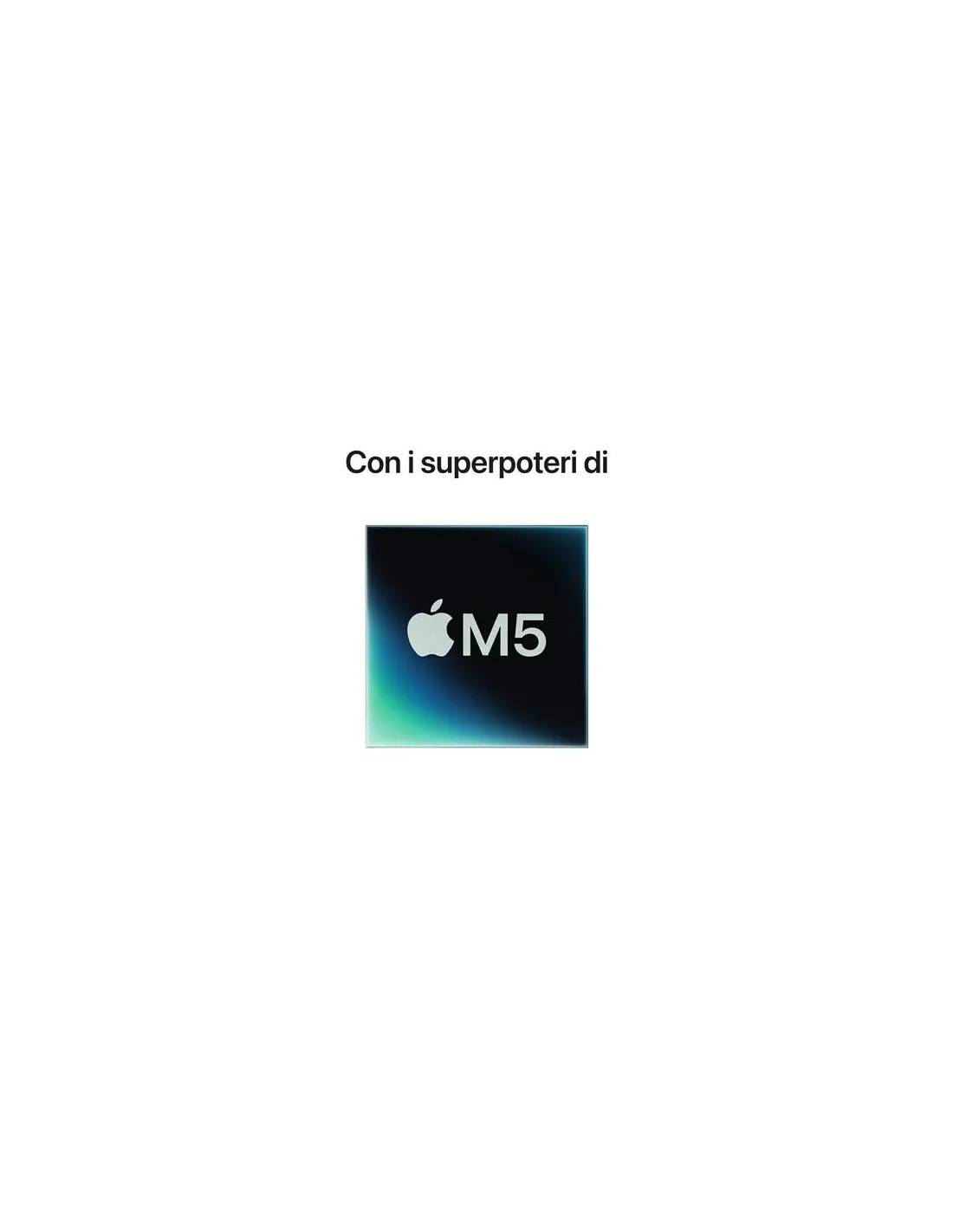 Apple MacBook Pro 14" M5 chip 10-core CPU 10-core GPU, 32GB, 1TB SSD - ArgentoMacBook Pro 14". Con i superpoteri di M5.MacBook Pro 14" con chip M5 ti offre una velocità eccezionale e una potente AI on device per lavorare, creare e fare tutto ciò che ami. Ha fino a 24 ore di autonomia e un display Liquid Retina XDR.Caratteristiche principali - CON I SUPERPOTERI DI M5 – Oltre a una CPU e una memoria più veloci, il chip M5 ha una GPU più potente con un Neural Accelerator in ogni core, per mettere il turbo quando si usa l’AI. Così puoi sfrecciare a velocità incredibili anche nei lavori più complessi.- PROGETTATO PER L’AI — Il chip Apple e tutti i principali componenti che lo alimentano sono progettati per gestire carichi di lavoro AI on device impegnativi, come l’inferenza e l’addestramento di modelli linguistici di grandi dimensioni (LLM). E Apple Intelligence rende più facile scrivere, creare e fare tutto ciò che vuoi, con funzioni di ultima generazione per la tutela della privacy.- FINO A 24 ORE DI BATTERIA – MacBook Pro 14" ti dà performance incredibili costantemente, anche quando non è collegato alla corrente.- MACOS METTE IL TURBO ALLE APP — Le tue app preferite, anche quelle incluse come FaceTime e Messaggi, vanno a tutta velocità su macOS. E grazie alla protezione integrata contro i virus e agli aggiornamenti software gratuiti, il tuo Mac resta sempre efficiente e sicuro.- TI PIACE L’IPHONE? ANCHE IL MAC TI CONQUISTERÀ – Il Mac funziona in perfetta sintonia con gli altri dispositivi Apple. Puoi fare copia e incolla dall’iPhone al Mac, e anche usare il Mac per inviare messaggi di testo o fare e ricevere chiamate FaceTime.- BRILLANTE DISPLAY PRO – Il display Liquid Retina XDR da 14,2" ha 1600 nit di luminosità di picco, fino a 1000 nit di luminosità costante e un contrasto di 1.000.000:1.- VIDEOCAMERA E AUDIO EVOLUTI – La videocamera Center Stage da 12MP ti tiene sempre al centro della scena, mentre i tre microfoni di livello professionale e i sei altoparlanti con audio spaziale e supporto per Dolby Atmos garantiscono un sonoro ottimale.- SI CONNETTE A TUTTO – Questo MacBook Pro ha tre porte Thunderbolt 4 e una porta MagSafe 3 per la ricarica, uno slot SDXC card, una porta HDMI e un jack per le cuffie. E ti permette di collegare fino a due monitor esterni.- PRIVACY E SICUREZZA SONO DI SERIE – Ogni Mac è dotato di robuste protezioni contro virus e malware. Se perdi il tuo Mac o ti viene rubato, l’app Dov’è può aiutarti a ritrovarlo. FileVault si assicura che i tuoi file siano protetti dalla crittografia, così solo tu puoi accedere. E gli aggiornamenti di sicurezza gratuiti contribuiscono a proteggerlo ancora di più.- ALIMENTATORI – N.B. MacBook Pro (14") con M5 include un cavo di ricarica da USB C a MagSafe 3 senza alimentatore. Per ricaricare questo dispositivo è necessario un alimentatore USB C o un’altra fonte di alimentazione USB PD da almeno 60W. Per una ricarica ottimale, Apple consiglia l’alimentatore USB C Apple da 70W, oppure l’alimentatore USB C Apple da 96W per sfruttare la ricarica rapida (fino al 50% di carica in 30 minuti).M5, M5 Pro o M5 Max? Sarà una scelta rapida.Questa è la nostra serie di chip più evoluta mai creata per un portatile professionale. Con le fenomenali prestazioni della CPU single-thread e multi-thread, e una memoria unificata più scattante, i chip della squadra M5 ti danno una velocità che sfiora l’impossibile. L’archiviazione SSD è fino a due volte più rapida di prima. E grazie ai potenti Neural Accelerator, sfrecci anche nelle attività che usano l’intelligenza artificiale.Progettato per l’AI. A partire dal chip.I chip Apple e tutti i principali sottosistemi che li alimentano sono progettati per l’intelligenza artificiale. Si tratta di una vera e propria piattaforma che raggruppa hardware, software e tutto l’ecosistema Apple. Così puoi far lavorare sodo l’AI on-device, con un’efficienza energetica incredibile. E ovviamente anche la sicurezza e la privacy sono parte integrante del sistema.Apple Intelligence, al tuo servizio.Con Apple Intelligence scrivere, creare e fare tutto ciò che vuoi diventa più facile. Trasforma una nota preparata al volo in un annuncio impeccabile. Elimina gli elementi di distrazione dalle foto con lo strumento Ripulisci. Crea immagini sfruttando i nuovi stili di ChatGPT su Image Playground. E usa le azioni intelligenti nell’app Comandi Rapidi per costruirti le automazioni che preferisci: per esempio confrontare la trascrizione di un audio con gli appunti che hai preso ed estrarre informazioni da un PDF. Apple Intelligence è l’intelligenza artificiale pensata apposta per te.Un giorno intero di autonomia. Molla la presa.MacBook Pro ha l’autonomia migliore di sempre su un Mac: fino a 24 ore, per lavorare, creare e giocare tutto il giorno. Ogni modello mantiene lo stesso livello di prestazioni anche quando non è collegato alla corrente. Così puoi concentrarti su quello che stai facendo e dare sfogo alla tua creatività, senza perdere tempo a cercare una presa. E quando sei a corto d’energia, grazie alla ricarica rapida ti bastano 30 minuti per far arrivare la batteria al 50%.Insieme sono ancora meglio.Mac e iPhone sono già straordinari da soli, ma insieme fanno faville. Grazie alle funzioni di Continuity, puoi passare da un dispositivo all’altro in un attimo per condividere file e foto o continuare i lavori iniziati.Per tutti i gusti e le ambizioni.Ci sono decine di migliaia di app ottimizzate per i chip Apple: dagli strumenti che usi ogni giorno ai tuoi giochi preferiti, fino alle app professionali più potenti. Su MacBook Pro vanno tutte a gonfie vele.Ti illumini d’immenso.Che tu sia su una terrazza soleggiata o in uno studio poco illuminato non fa differenza: lavori sempre al meglio. Lo splendido display Liquid Retina XDR offre 1600 nit di luminosità HDR di picco,2 e fino a 1000 nit per le immagini SDR in pieno sole, così ha